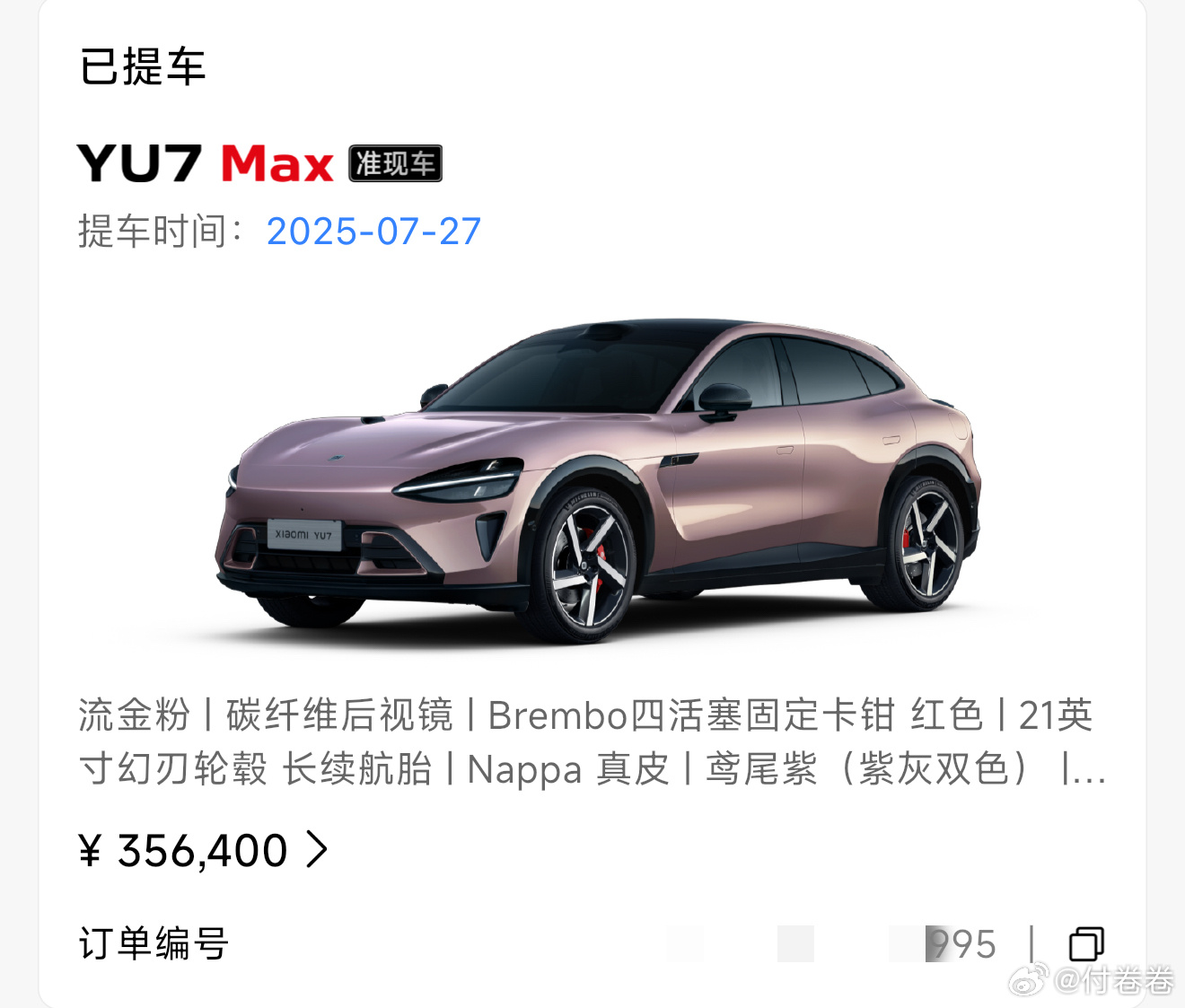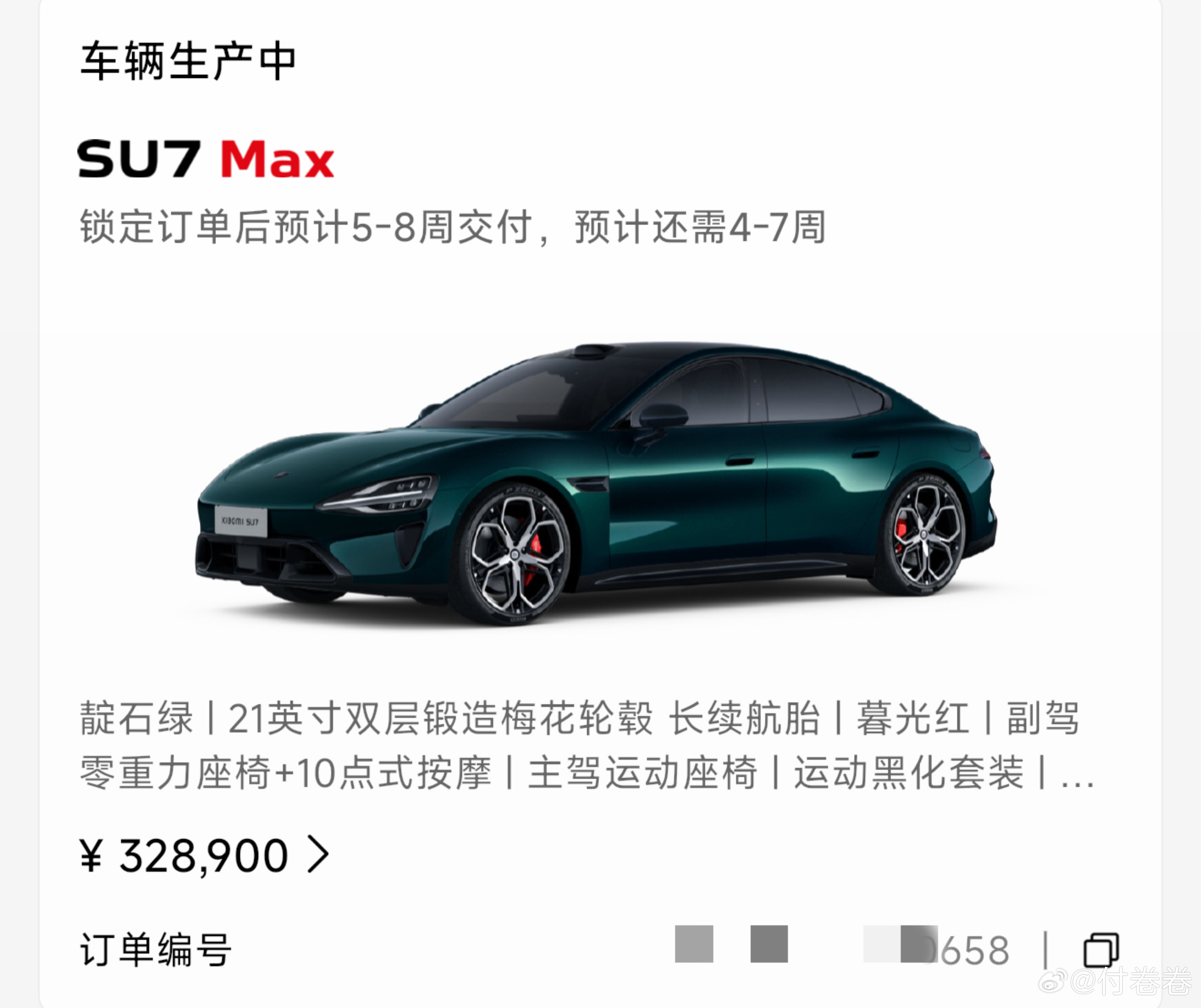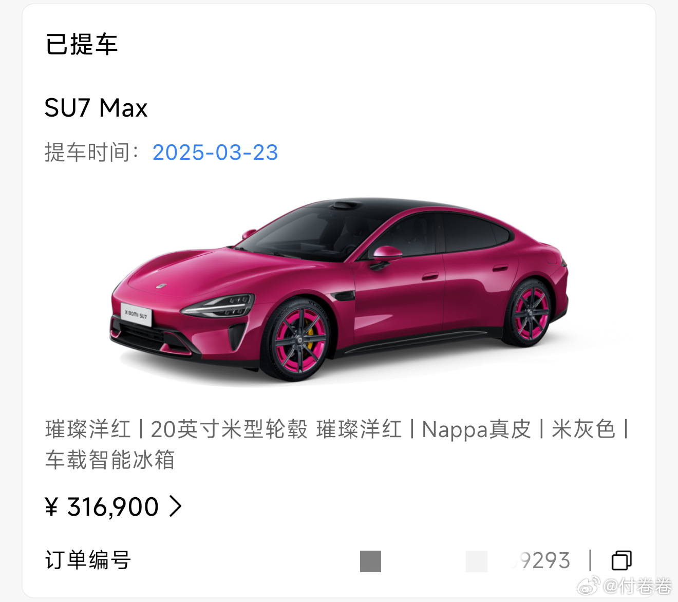 雷总,我也是增购啊……我的6台小米订单(我跟我老公两个账号的订单)小米汽车新一代su7付卷卷爱粟
