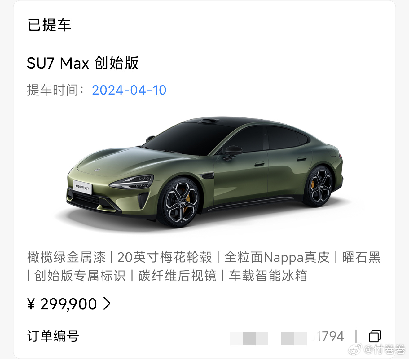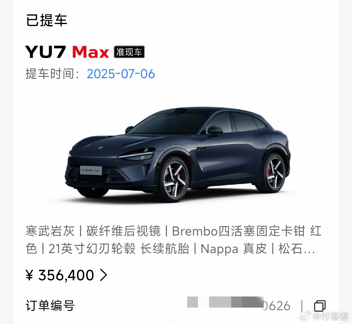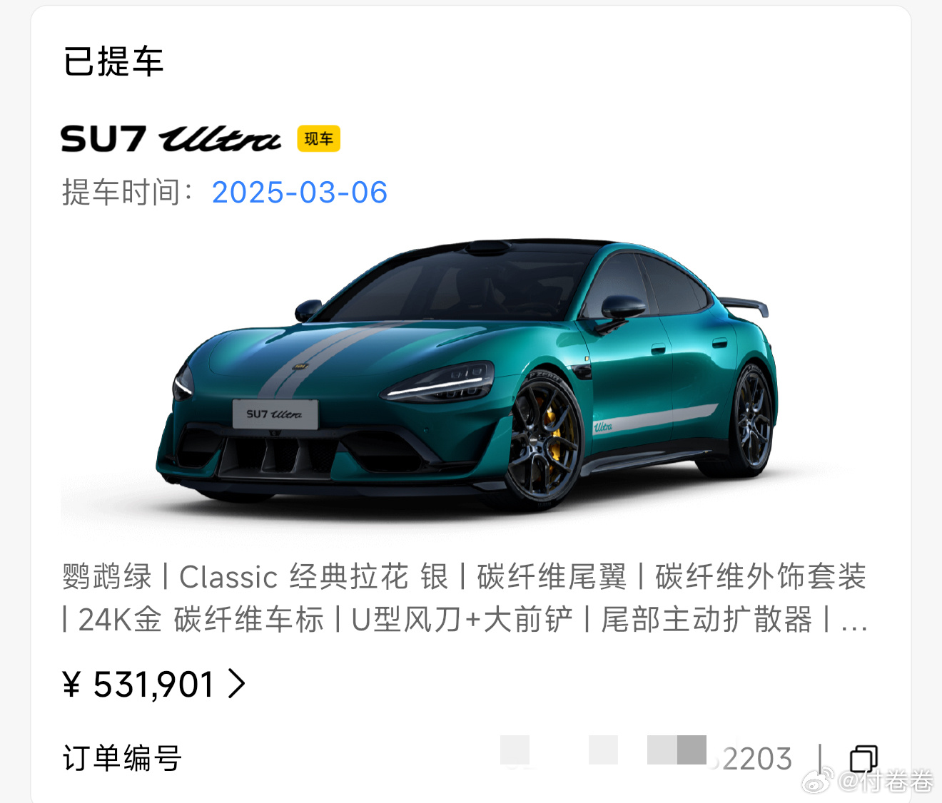 雷总,我也是增购啊……我的6台小米订单(我跟我老公两个账号的订单)小米汽车新一代su7付卷卷爱粟