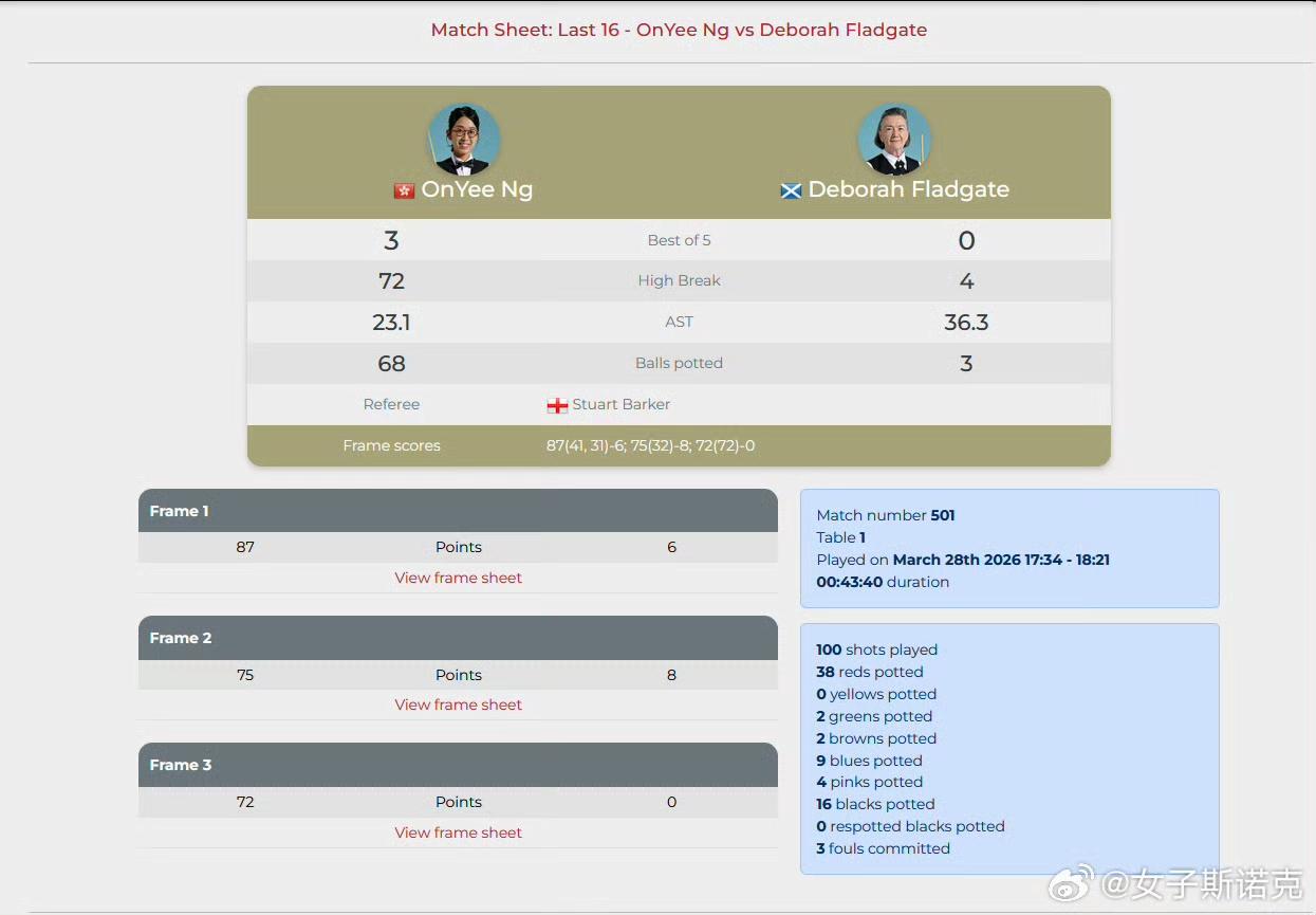 不声不响地,白雨露很轻松地晋级了英国女子斯诺克公开赛八强。 一同晋级的名将还有吴安仪、旺哈鲁泰。三人的比分都是3-0,未失一盘! 身为世界第一的小白2023年曾经夺得过该项赛事冠军。