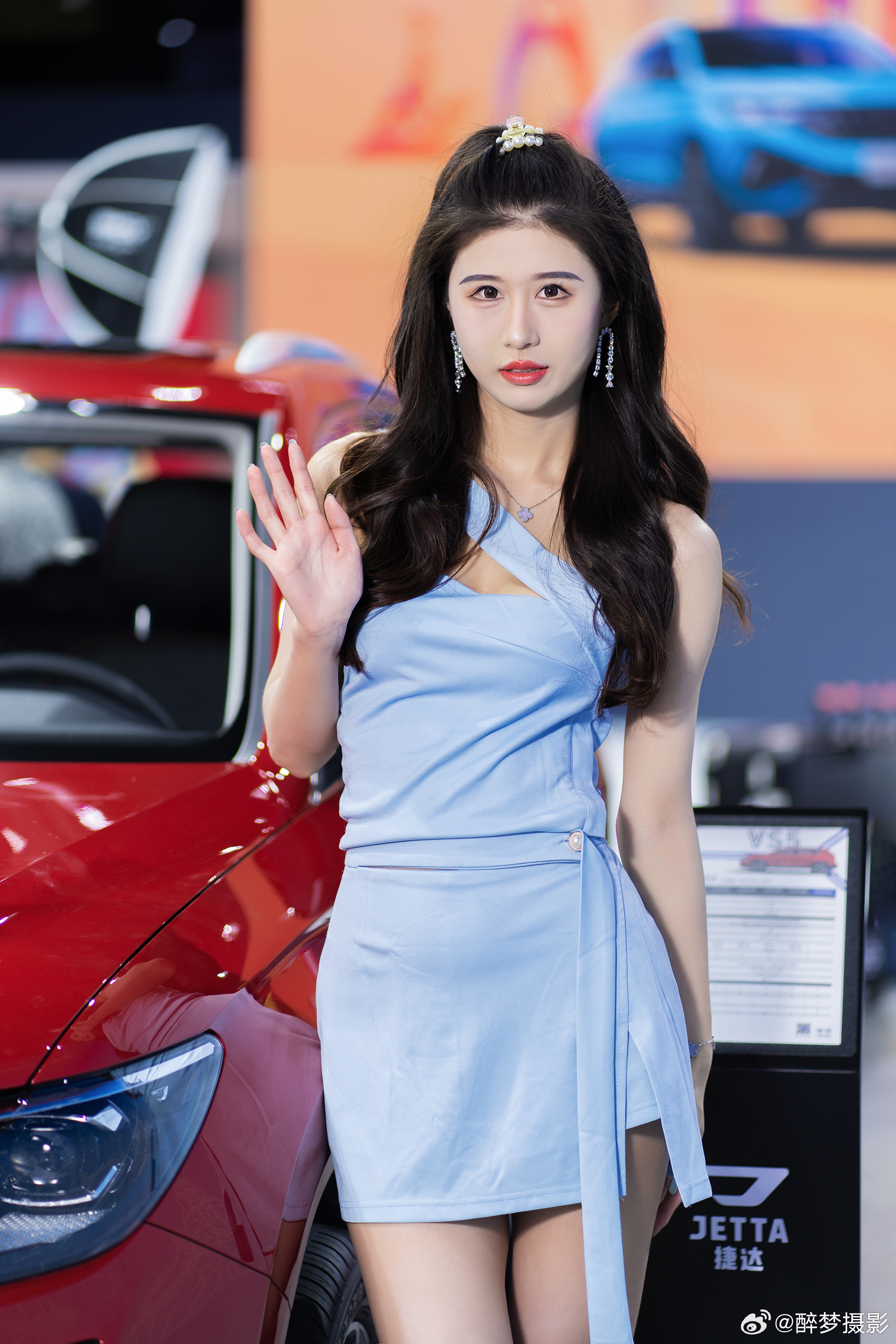 甜妹一个,这位车模小姐姐可爱得像个小朋友