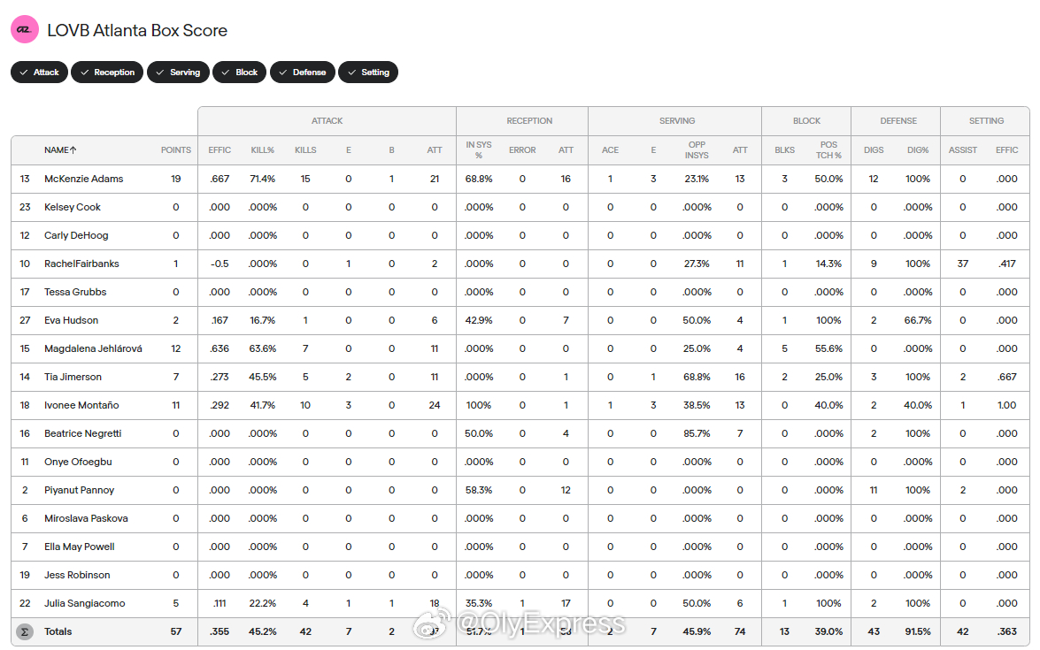 【美国LOVB女排联赛麦迪逊0-3亚特兰大 龚翔宇8分】国际排坛战报速递中国排球留洋动态 3月28日亚特兰队,美国LOVB女排联赛,麦迪逊客场0-3(20-25/20-25/23-25)不敌排名第二的亚特兰队,以6胜12负继续垫底。龚翔宇8分,其中13扣7中,另有1个拦网。