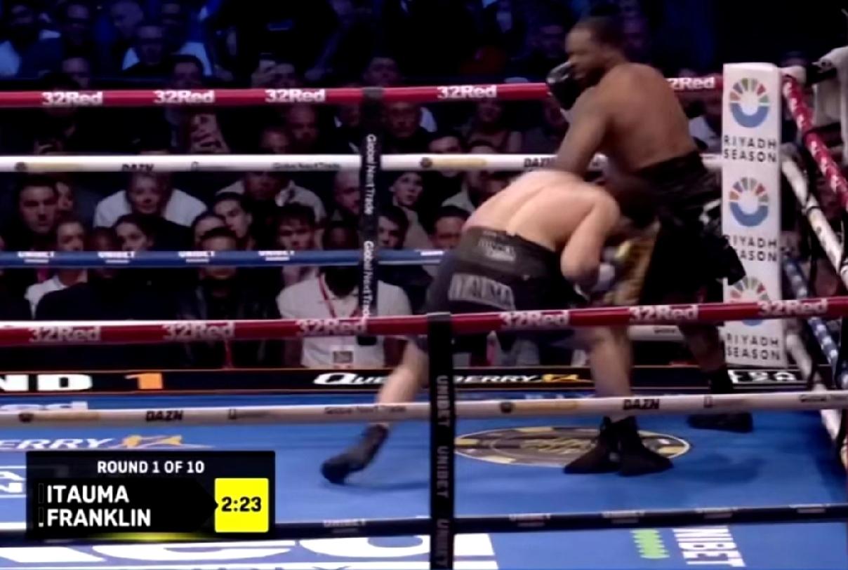刚刚,伊陶玛疯狂五回合KO富兰克林,将成绩提升为14战全胜,12次KO对手,这位年仅21岁的后起之秀被热捧为“泰森二代”,可谓是实至名归。富兰克林并不是软柿子,此前他的职业战绩24胜2负,其中15场KO获胜,生涯曾被约书亚和怀特击败,但是从未被KO。 这次伊陶玛从第一回合便牢牢占据了赛场中心位置,步步紧逼,先是击腹拳让富兰克林抱架下移,然后给他头部重创,第三回合,伊陶玛突然发力,一记大摆拳将富兰克林击倒读秒。此后,基本上是伊陶玛单方面屠杀,富兰克林终于在抵抗了五回合之后,被伊陶玛一个隐蔽的左勾拳命中下巴,摇摇欲坠之际又被直拳命中面门,富兰克林轰然倒地,裁判读秒结束也没有起来。伊陶玛这个小伙子简直太优秀了,要速度有速度,要技术有技术,要力量有力量。上次怀特都没有撑过一个回合便被残暴KO。重量级越来越热闹了,要面临大洗牌吗?乌西科、卡巴耶尔这两位不败金身不知该有何感想!恭喜伊陶玛,希望再接再厉,挑战王者,重量级拳坛必将有你的一席之地!加油!摩西伊陶玛 [点亮平安灯][点亮平安灯][点亮平安灯]