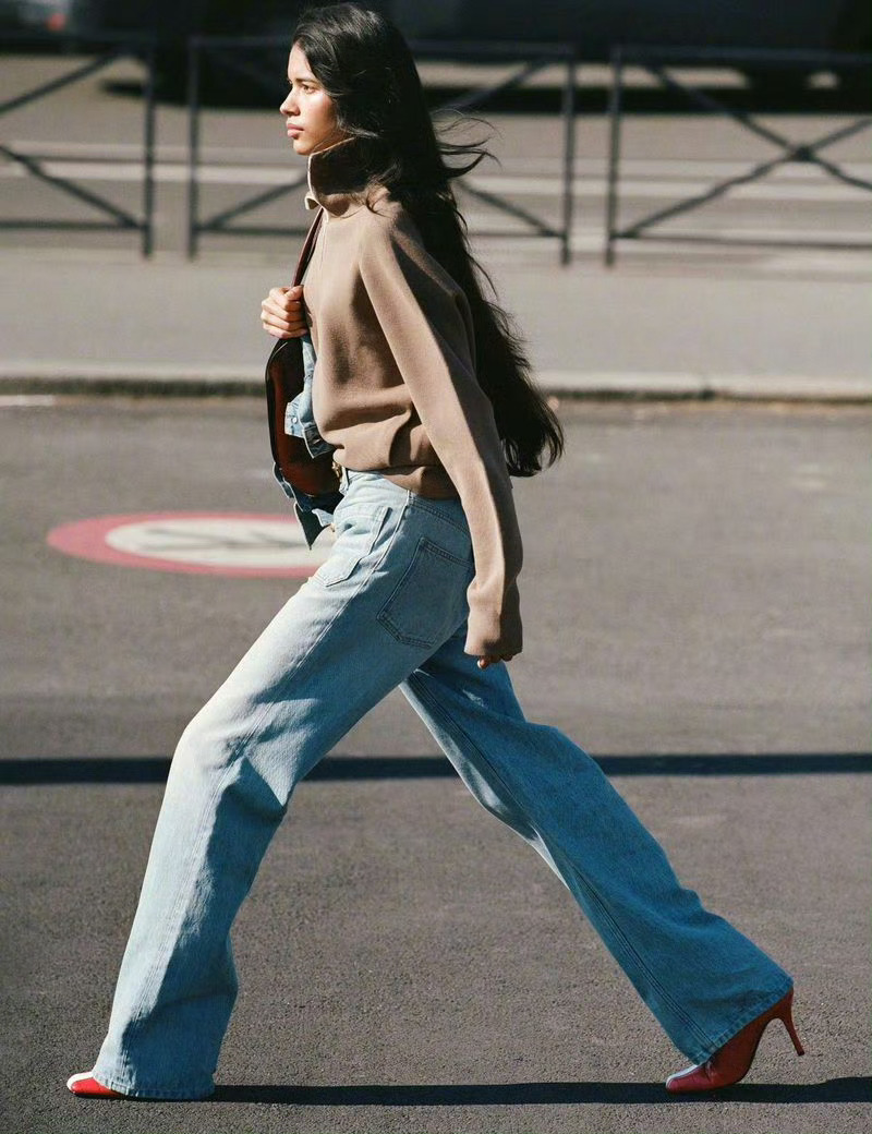高圆圆秋日暖光里,红枫与她的笑靥相映成诗。藏青大衣叠搭牛仔内搭,简约又透着松弛