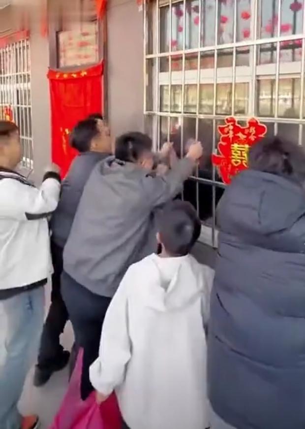 搞不懂,这是接亲还是抢亲? 这样的婚闹也太离谱了。 打家劫舍似的,连防盗网都拆了