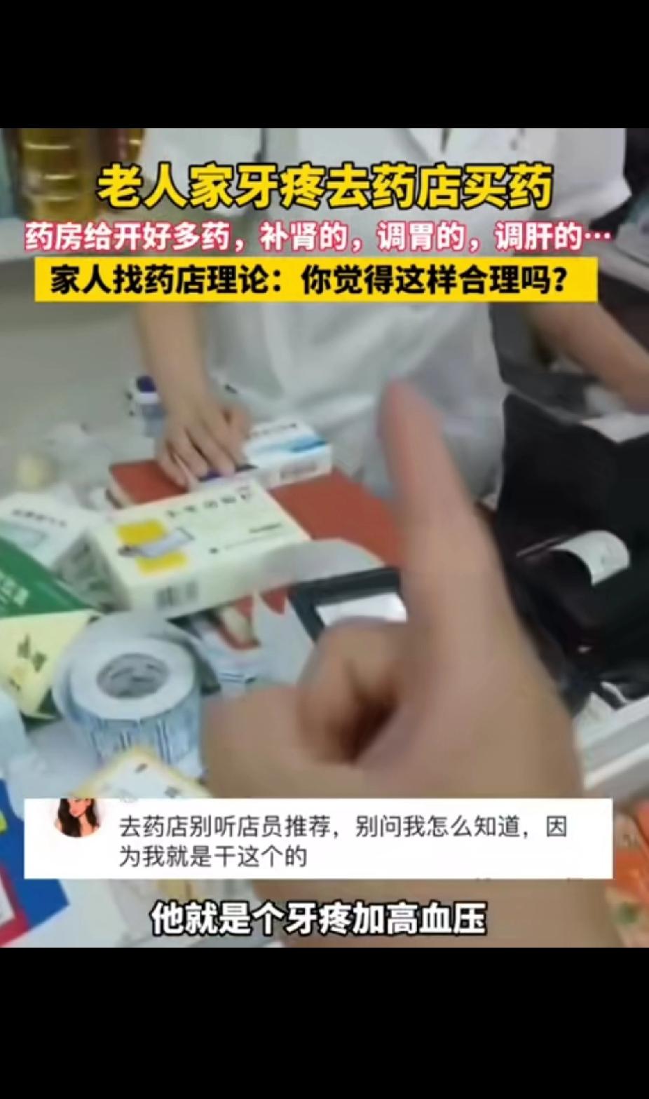 老人牙疼去药店买药,药房店员给老人开了好多药,有补肾的、调胃的、调肝的…… 家属愤怒找药房质问:你凭什么认定老人肾有问题?你开了一堆药让老人回家吃,你觉得这样做合理吗? 现在的药店真是让人一言难尽!8月10日,安徽合肥一位老人牙疼去买药,药店店员除了开治牙疼的药,还开了补肾、调胃、调肝的药,甚至连小柴胡颗粒都有。 老人女儿下班看到后火冒三丈,跑去质问店员开药的合理性。 网友也纷纷吐槽自己在药店的遭遇,有人被搭售保健品,有人买大牌被推荐杂牌。 以前药店讲究“但愿人间无疾苦,宁可架上药生尘”,现在却只想着卖药赚钱,啥贵卖啥,利润高就使劲推销。 从来不去仲景大药房,去了感觉自己浑身都是病,只是一个小感冒店员能说出一大堆原因,不得不说药店的店员比医院的医生都厉害,你一说症状人家立马就判断出你得了什么病,还免费附赠几个其他问题。简单两盒药不花个大几十是出不来的。 唉!不舒服还是去诊所或医院,最起码能对症治疗,不要去药房听他们瞎胡说。 图文里哪是治病救人,分明是坑人嘛!希望药店能多些良心,别再这么乱推荐药了。