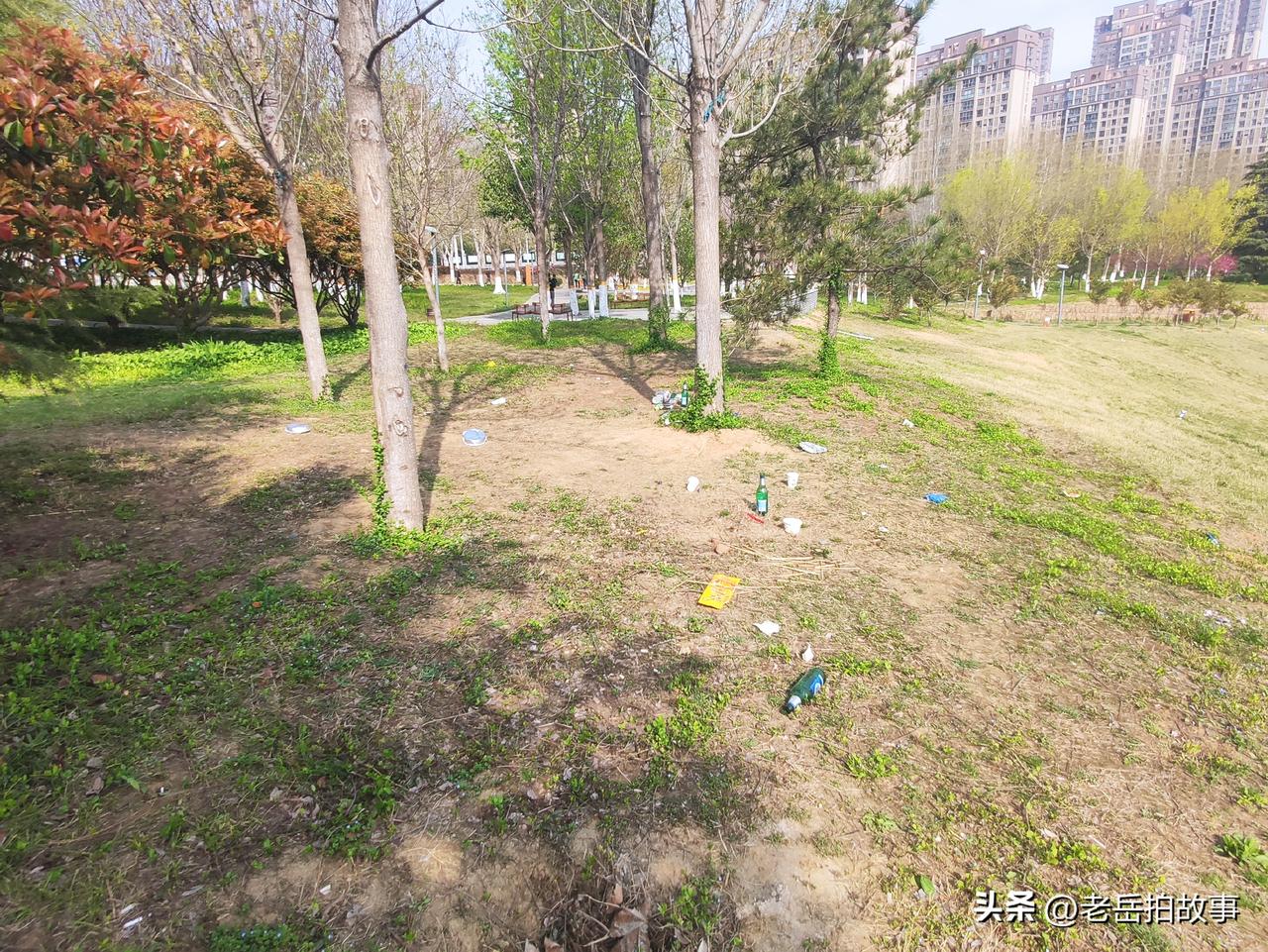 人走了,但却把你的低素质,无教养留下来了!3月29日早上八点左右,在郑州市西流湖公园南园湖西岸的高坡草坪上,看到地上丢弃一大片啤酒瓶、饮料瓶、用过的餐巾纸、竹签等生活垃圾。一位负责卫生打扫的环卫师傅正在低头打扫,有些被甩到了斜坡上,需要小心翼翼的下去捡拾。 现场一些游客对此行为进行了口头谴责:“垃圾人!”有人分析,这应该是昨天晚上有人过来在此野炊时留下的。一个人的文明教养,体现在平时的律己上,像这样的不文明行为的制造者,一定不会是一个有教养的文明人。把自己的欢乐建立在破坏环境,给别人制造麻烦上,这样的人不会有人说他是文明的有教养的人。美好的环境是环卫人士付出艰辛劳作和汗水换来的,更需要每一个享受者,从自身做起,做一个文明守护者。
