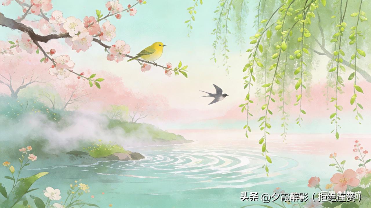 梅柳吟·春续 晓岸轻烟拂翠柔, 梅香未尽柳丝悠。 莺啼浅陌春光好, 燕剪清波
