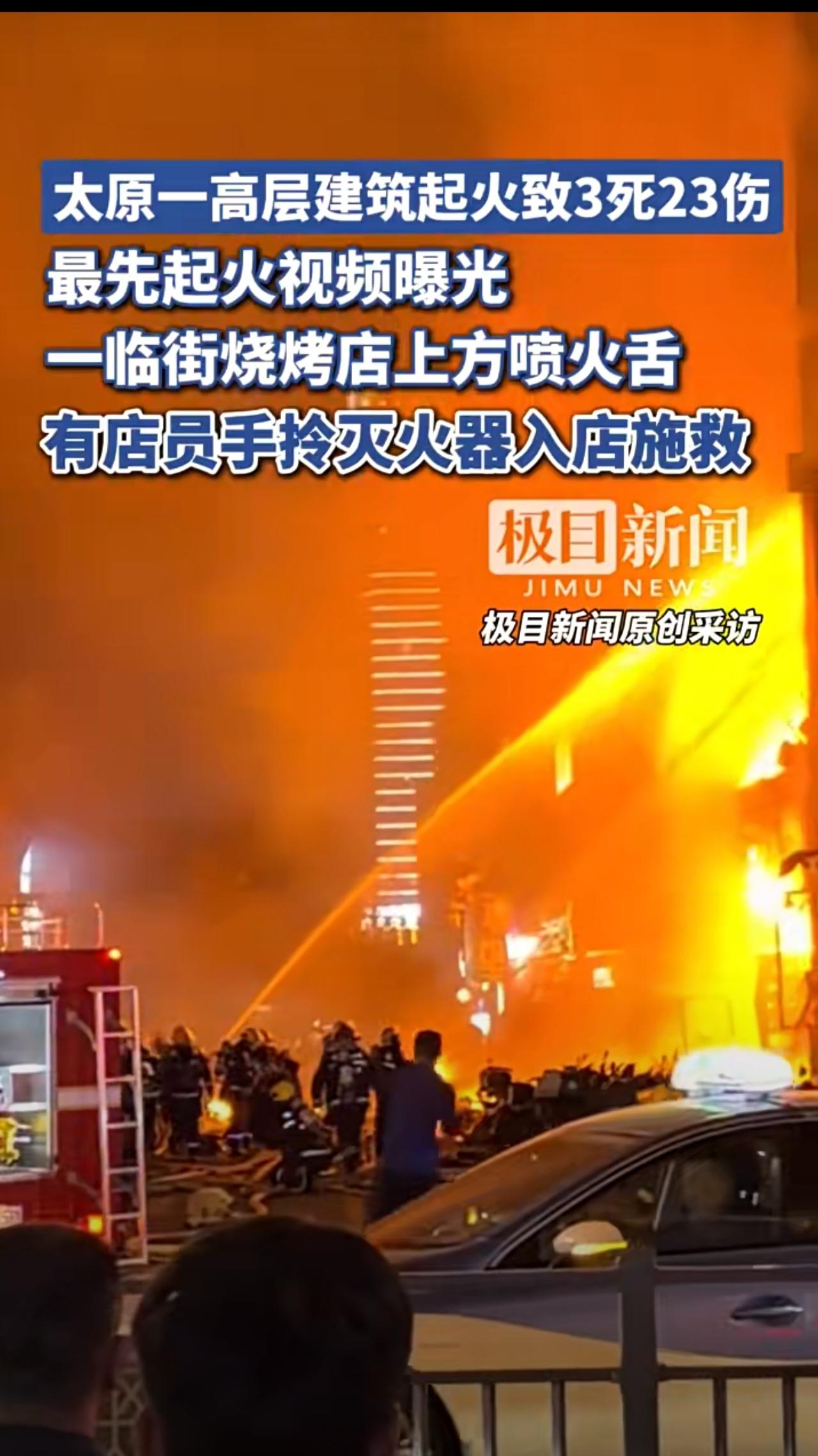 商住两用就是危险! 太原一高层建筑起火致3死23伤,最先起火视频曝光:一临街烧烤店上方喷火舌,有店员手拎灭火器入店施救! 而且危险的是伪劣外墙保温层,任何一间屋失火都能点燃外墙,这概率多可怕! 希望一切平安,逝者安息,生者尽快恢复健康,也希望逝者家属节哀顺变,尽快查清原因,严惩责任人!