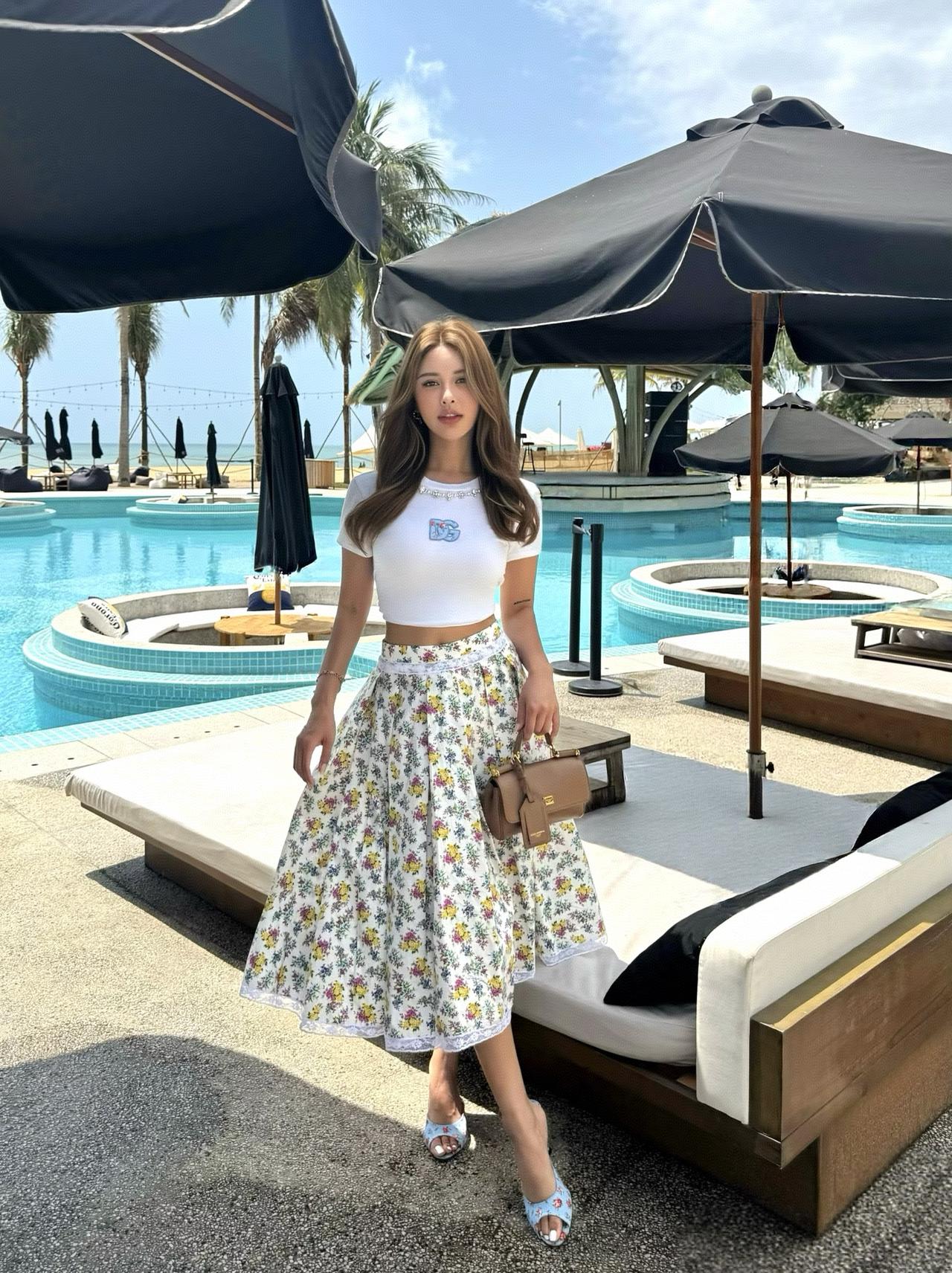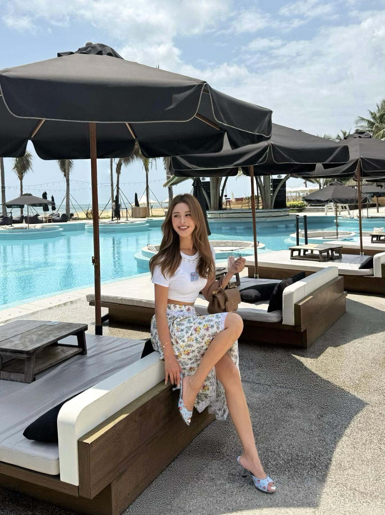 吴越这身打扮简单大方,气质到顶了。虽然也露肉了,然而看着很舒服,很自然。