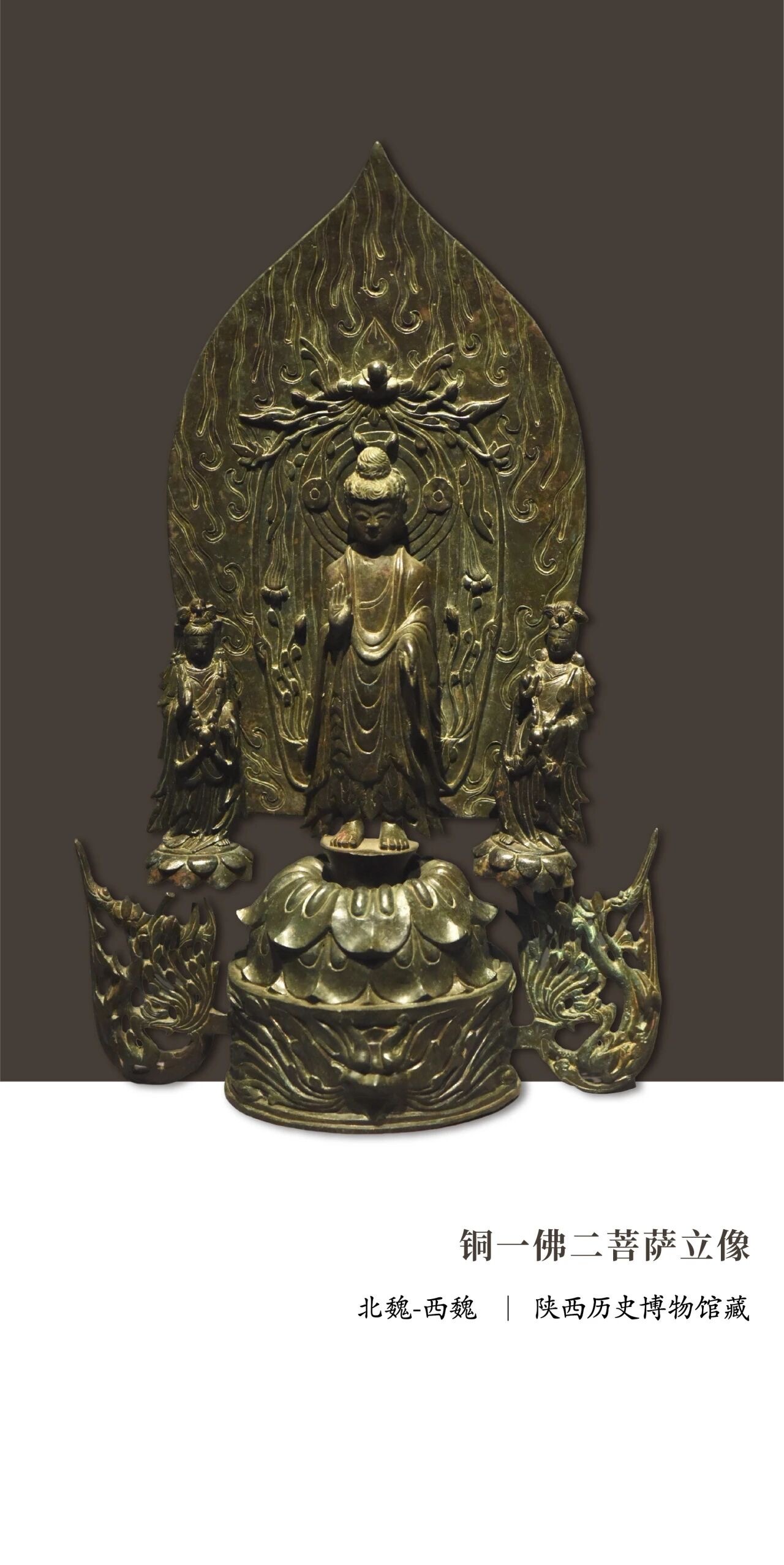 西魏的青铜佛像 金属佛像的失蜡法技术至迟在北魏晚期已经成熟,并能铸造出造型复杂、细节精细的作品。然而,西魏时期的主流铸造工艺,仍是传统的范铸法。 西魏工匠利用范铸法,成功模仿出了本需失蜡法才能实现的立体效果,例如佛像衣纹的起伏、肌肉的饱满感,均可通过精细的范型设计得以表现。