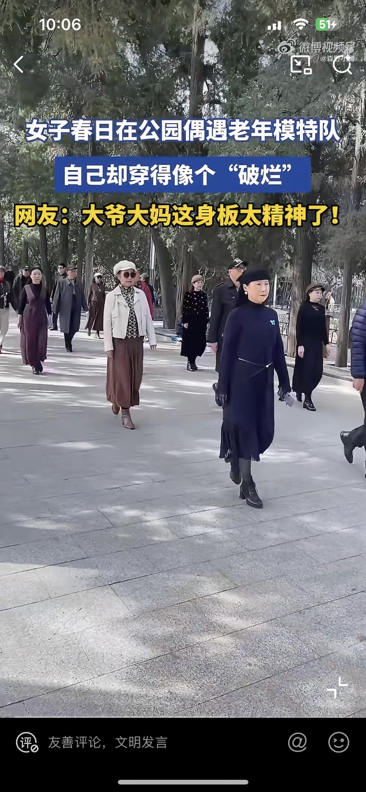 女子在公园偶遇老年模特队,看他们的衣服光鲜亮丽,身材笔直挺拔,对比自己穿个睡衣就出门,像个乞丐一样。这就是活生生的现实对比。退休的老人生龙活虎,时尚,健康,充满活力。上班的人反而随意懒散,没有精气神。老年人是真的在享受生活,年轻人就像是在被生活折磨,推着走。