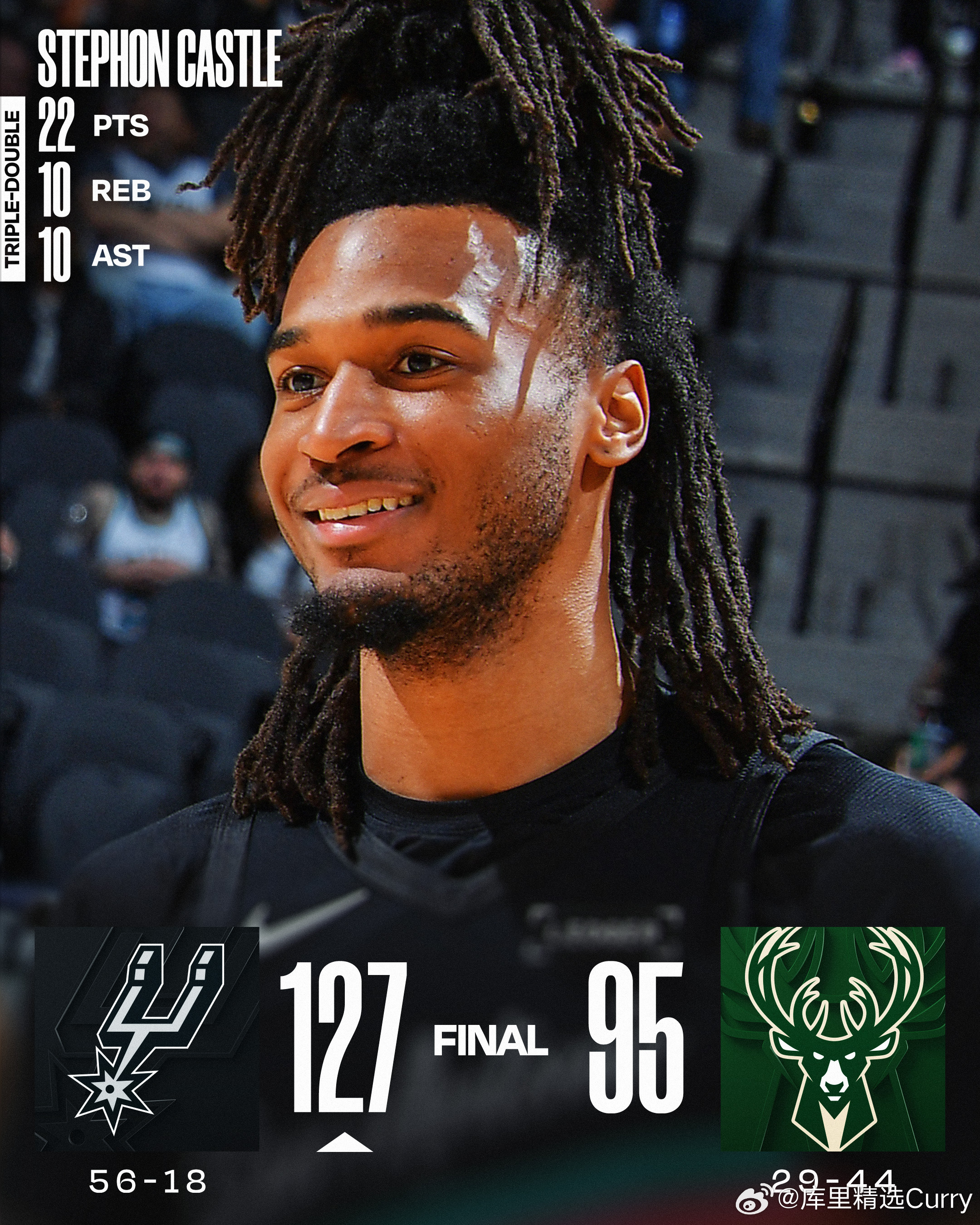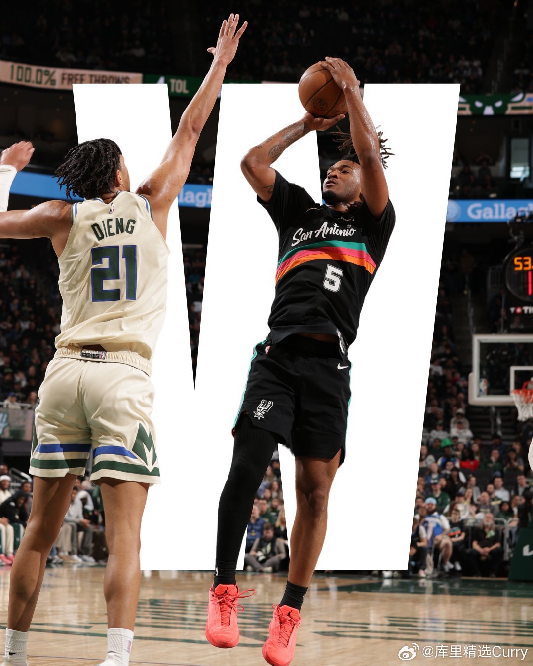 恐怖战力,马刺迎来8连胜,近28场比赛26胜。同时,随着今天雄鹿不敌马刺,雄鹿已