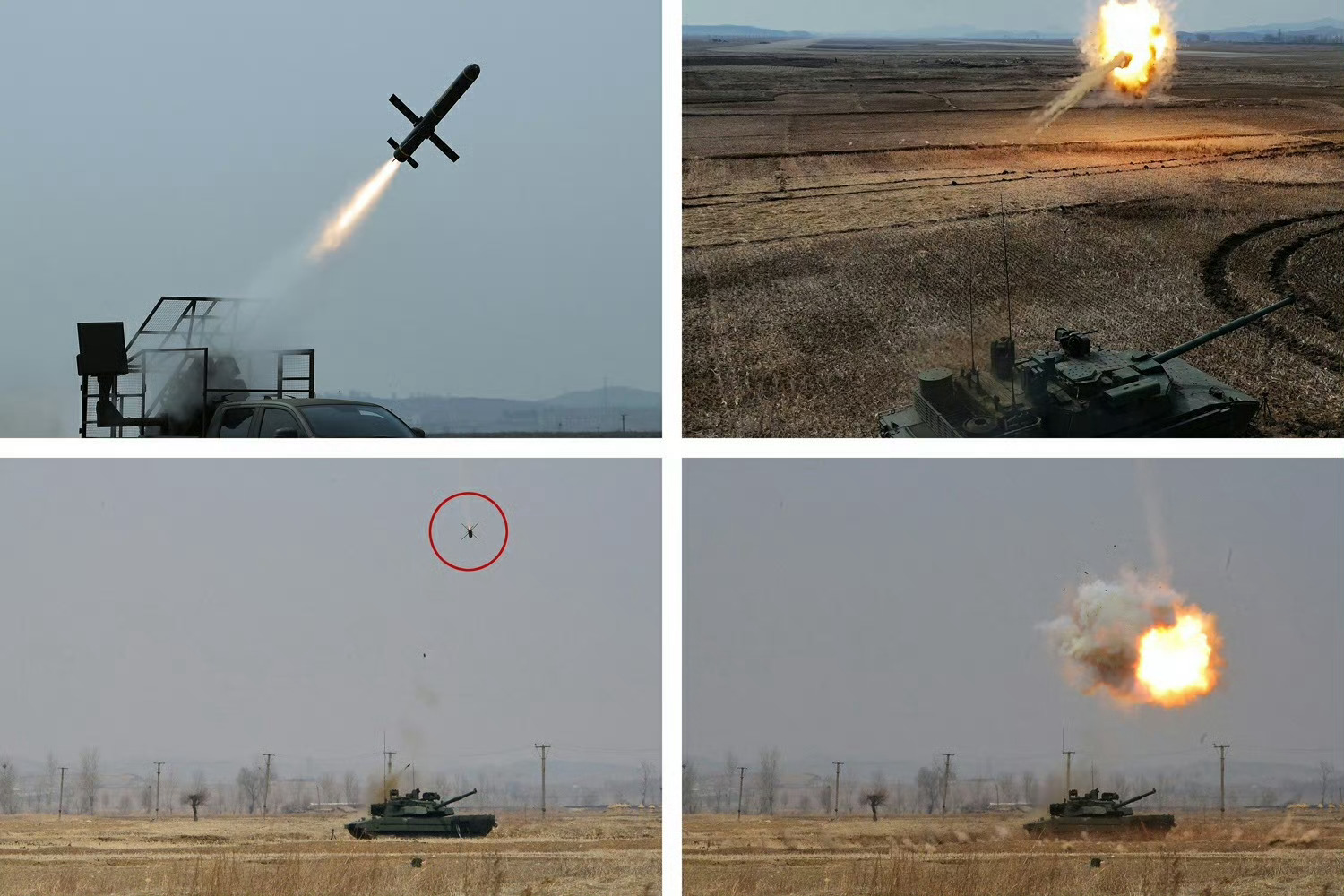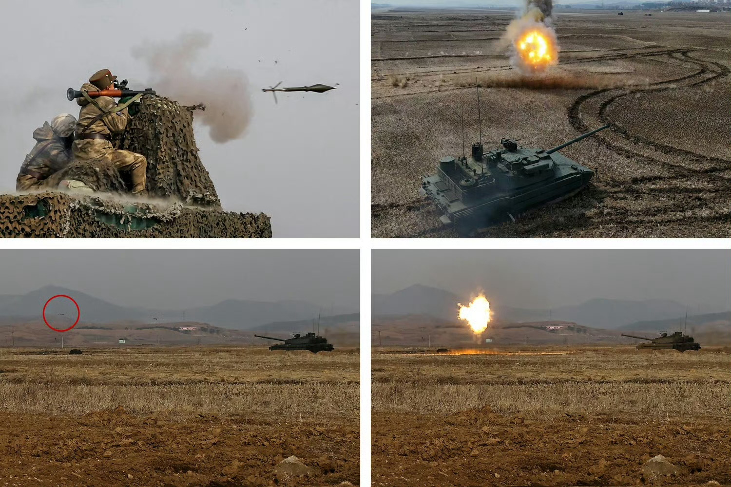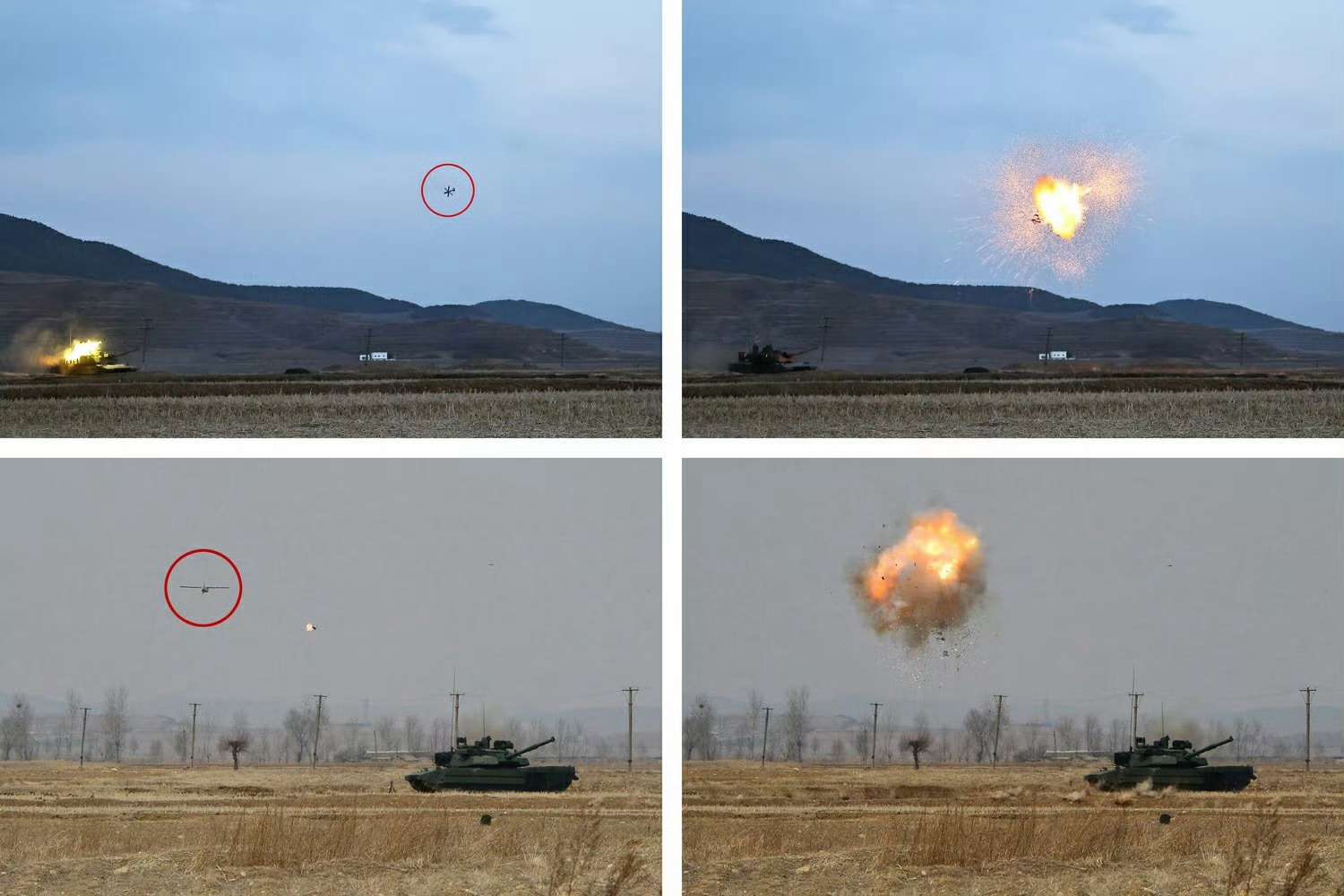 朝鲜军工单位向将军现场展示天马-20主战坦克的APS主动防御系统