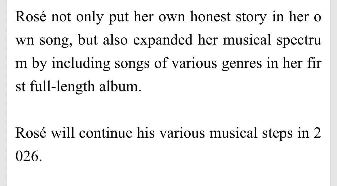 据韩国多家新闻网站报道,继Rosé首张专辑大获成功之后,她预计将在 2026 年继续进行全球音乐活动。已经迫不及待了😍