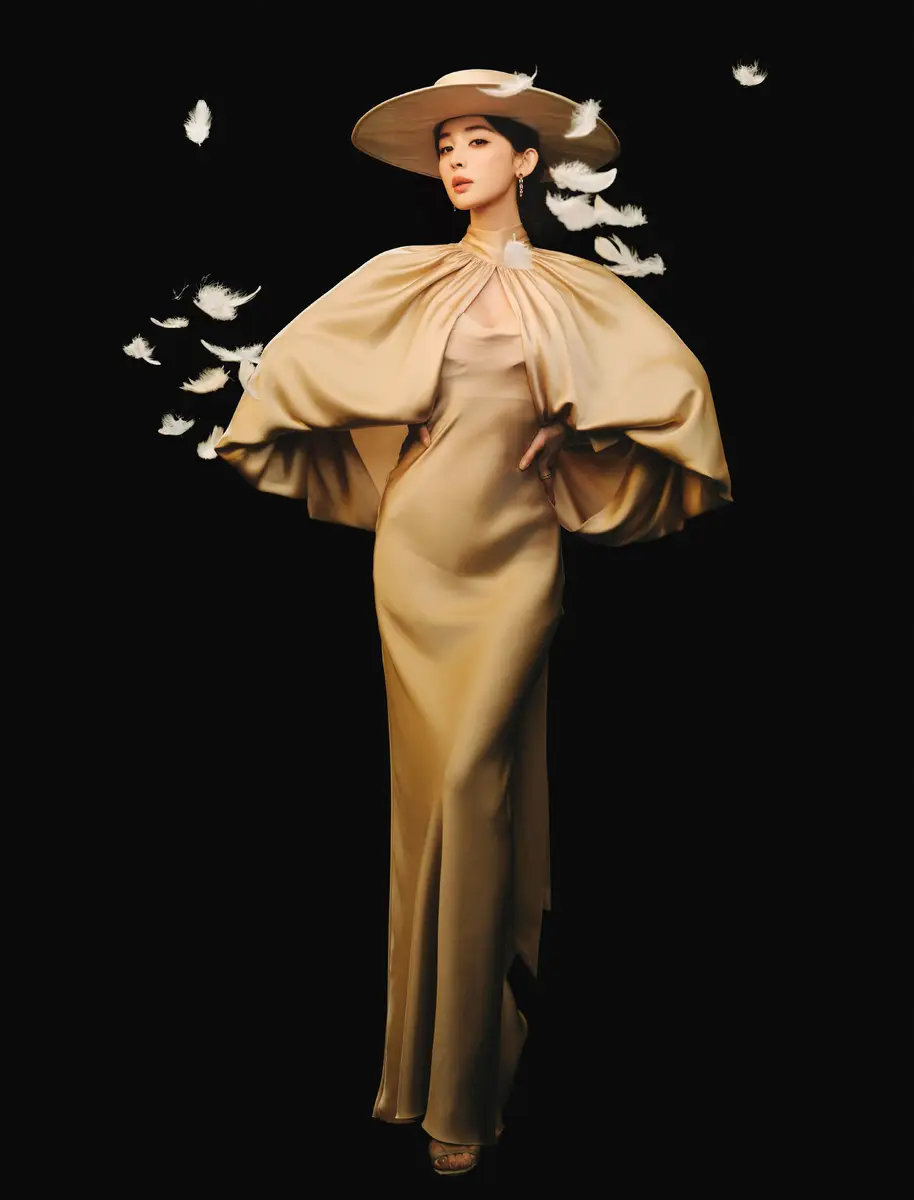 娜扎穿香槟金斗蓬裙化身复古名伶!气质优雅魅力十足
