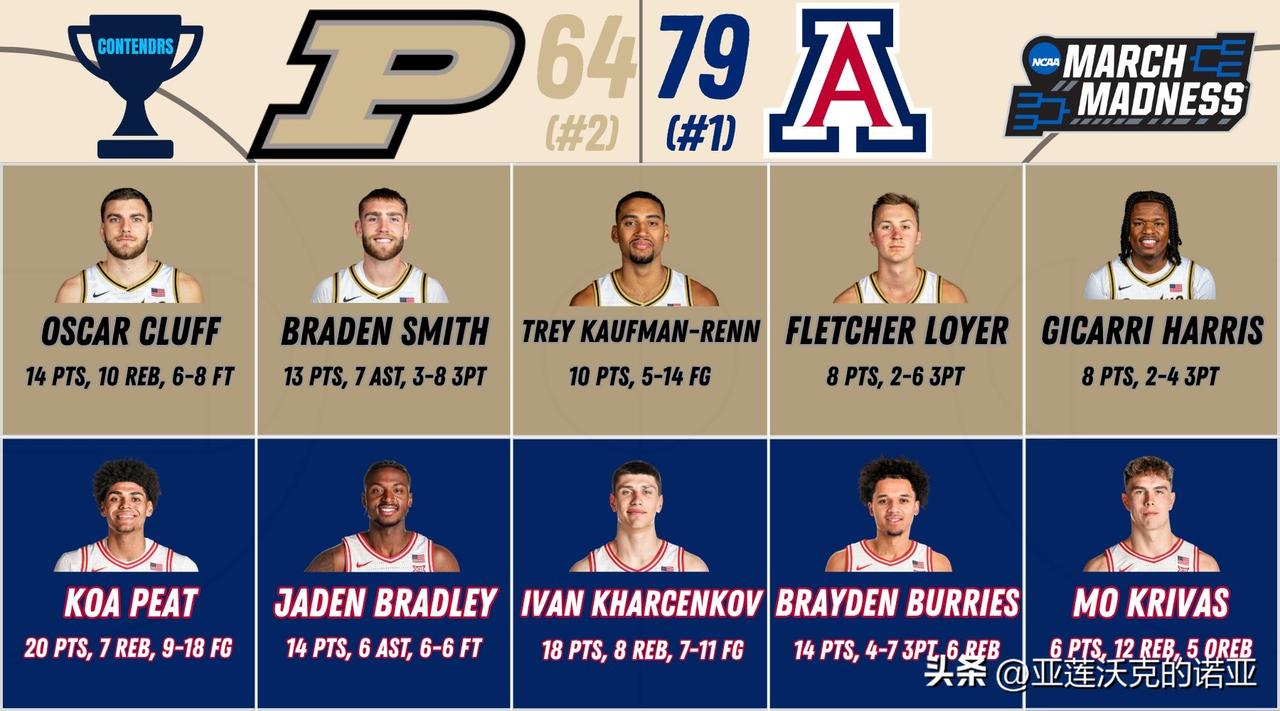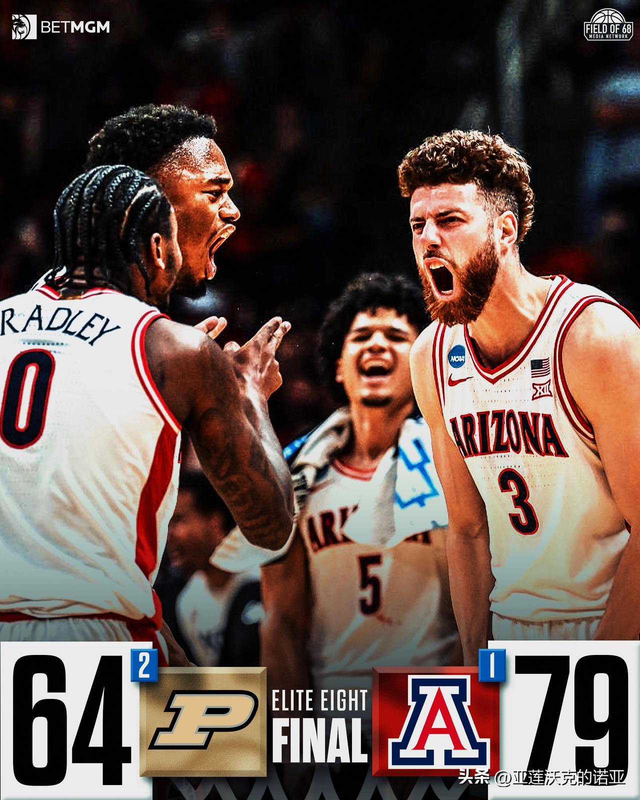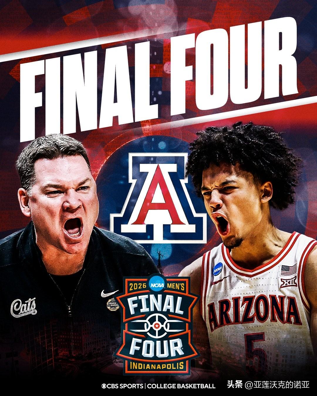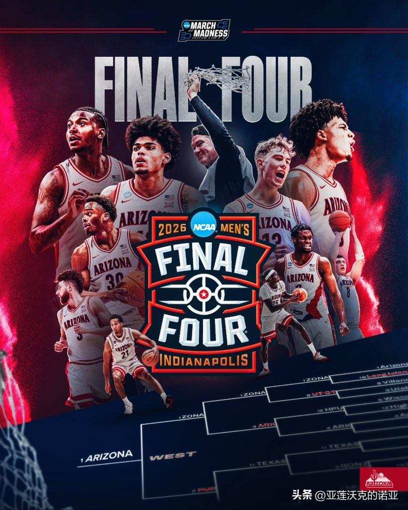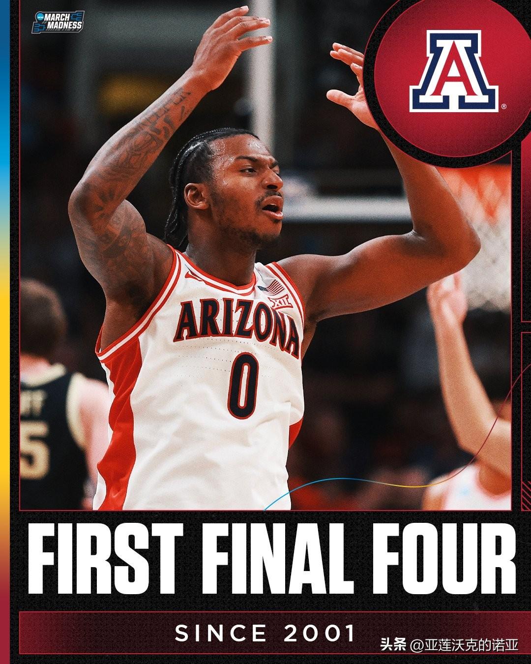 亚利桑那大学下半场逆转击败普度,疯狂三月 球队自2001年以来首次晋级最终四强,将前往印第安纳波利斯,那里正是野猫在1997年夺得队史唯一一次全国冠军的福地,自1998年以来从未有西部球队夺冠,51岁主帅Tommy Lloyd会比他在冈萨加的老师63岁Mark Few先一步拿到全国冠军?