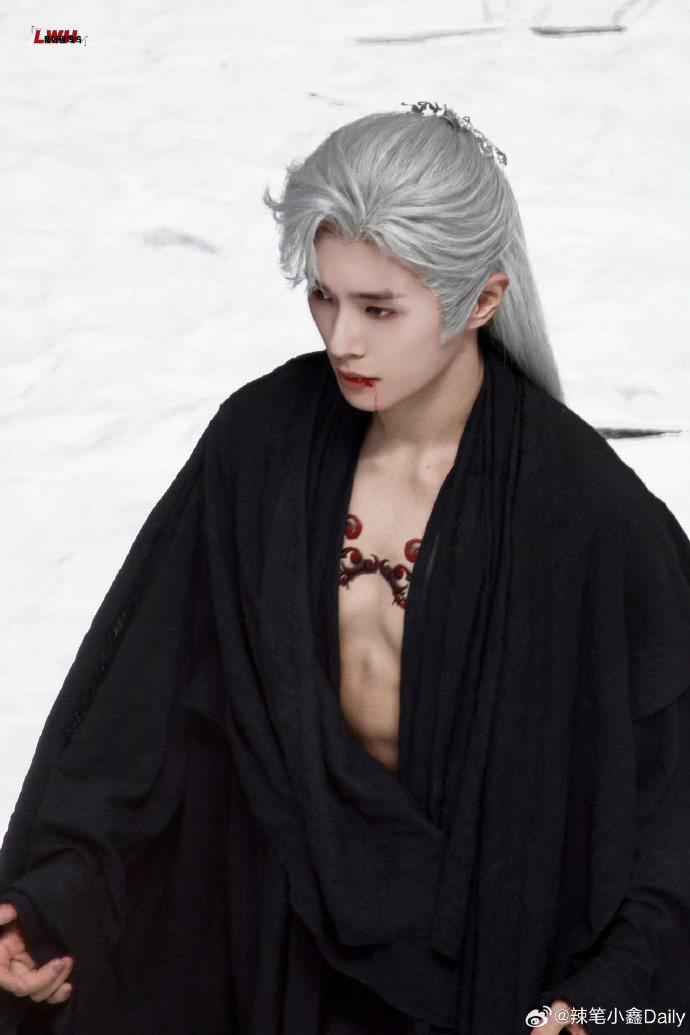 李汶翰路透白发深v 《予苍龙》路透太震撼了!李汶翰白发深V黑衣造型,赤焰纹身与鲜