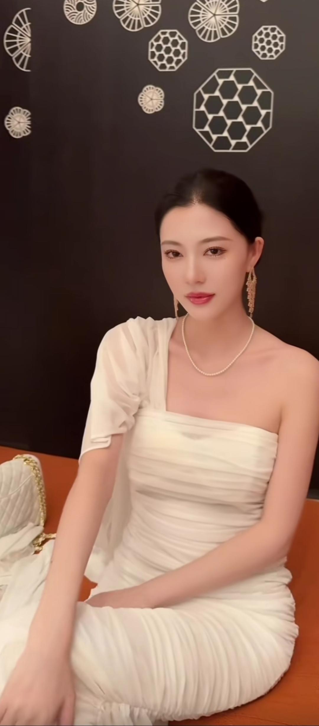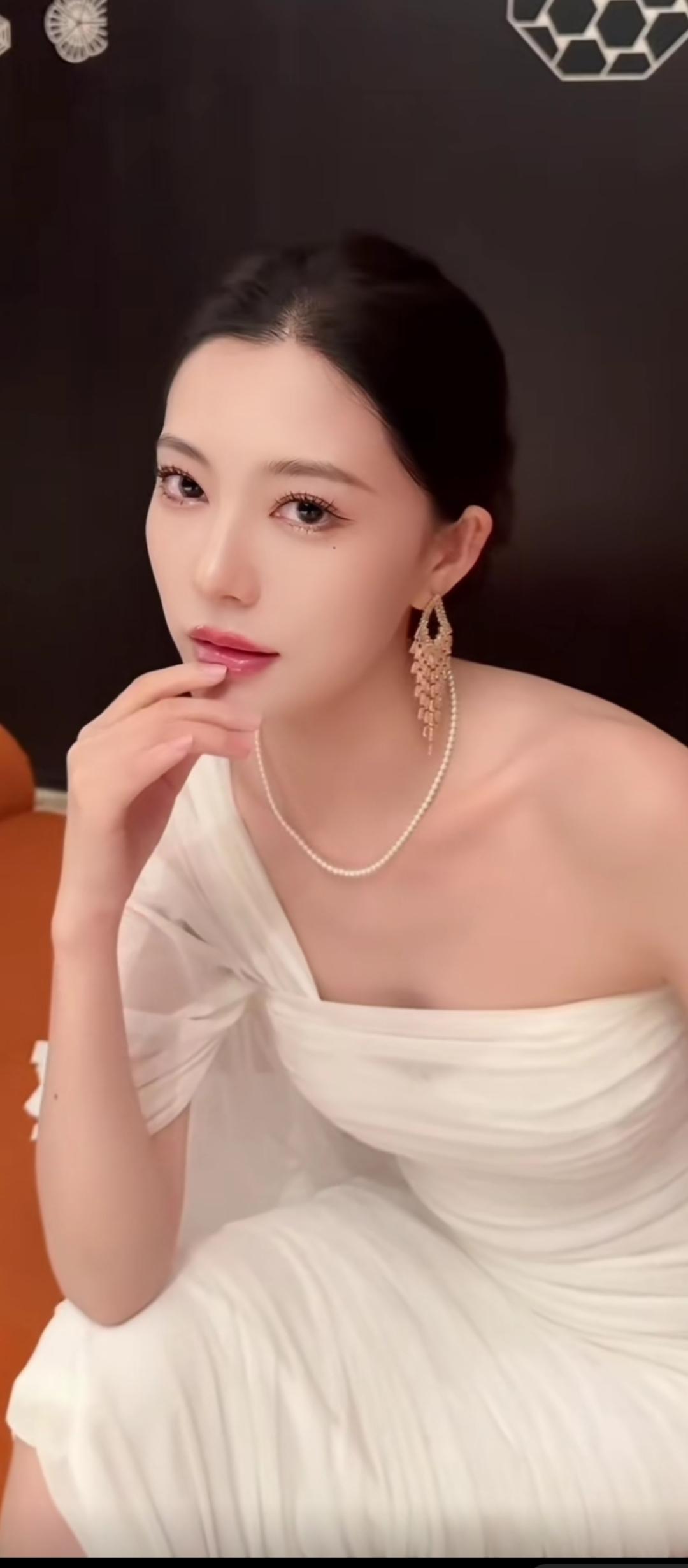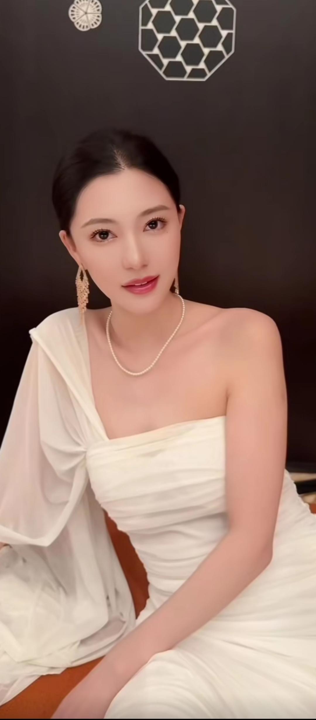 优雅白裙,珍珠耳环,气质满满!