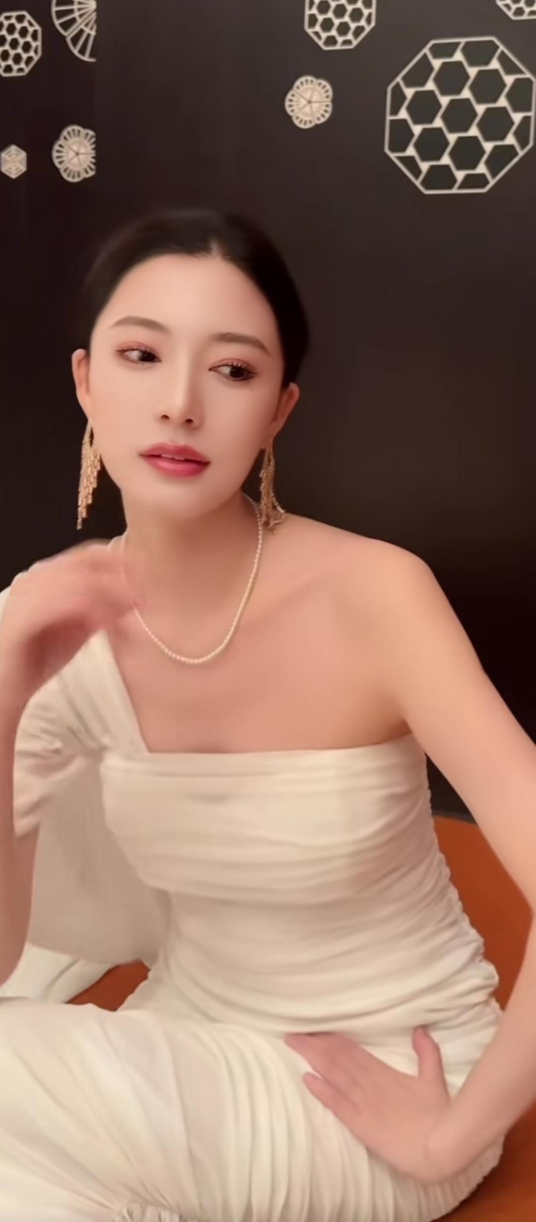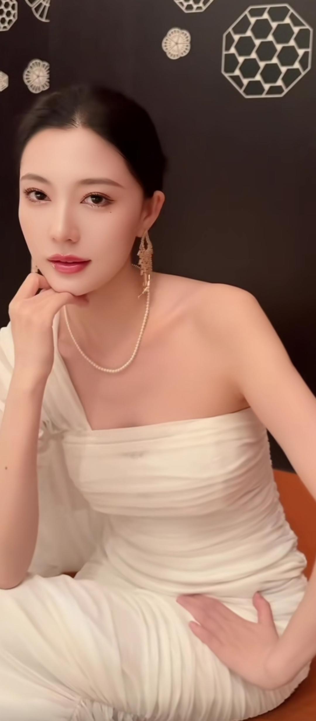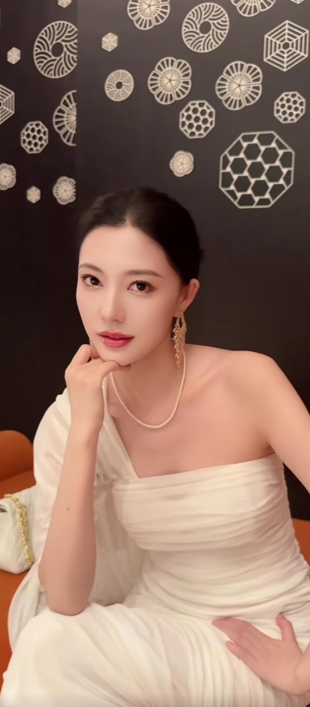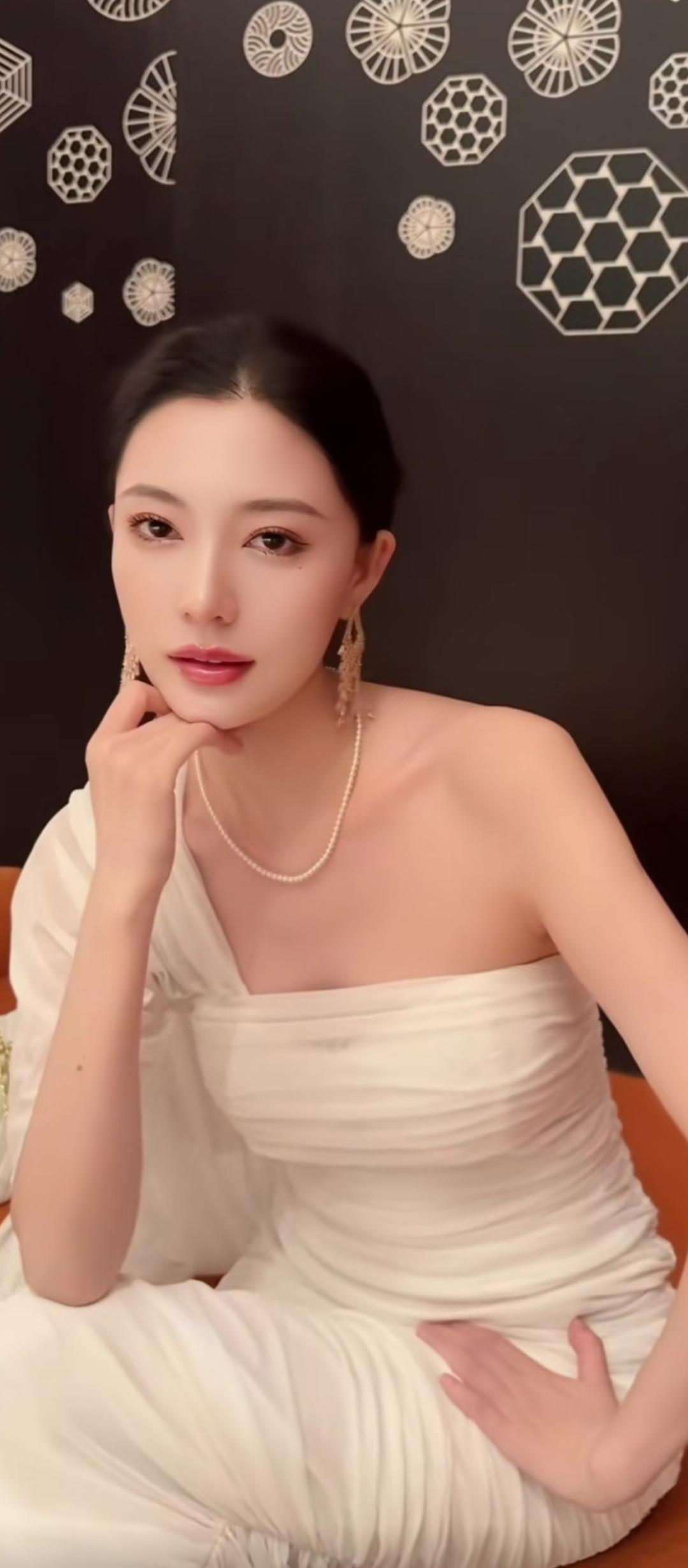 优雅白裙,珍珠耳环,气质满满!