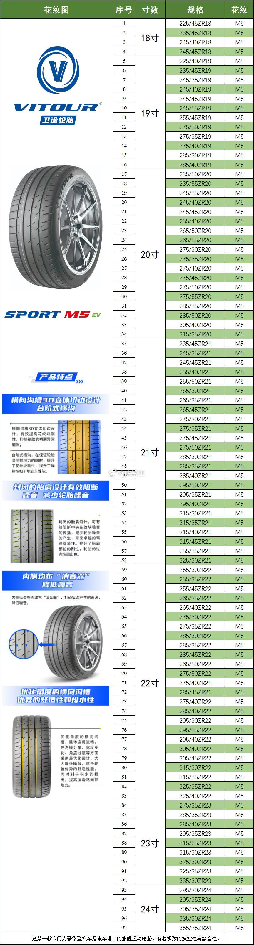 卫途 SPORT M5 轮胎 ,性能卓越,品质有保障,高性价比好性能!大规格全覆