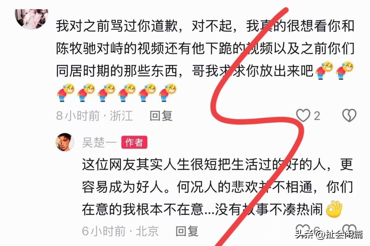 吴楚一真的成熟了,不想再掺和陈牧驰的事,放下过去,朝前走。 因为昨天陈牧池官宣了结婚生子,很多人跑到吴楚一的账号下面留言,让他直播回击。 吴楚一回复说:过好当下,敬春天,不敬过往。 弦外之意已经放下。 真的祝福他放下过去,朝前走吧。不要纠缠在过去的烂事儿,烂人里。