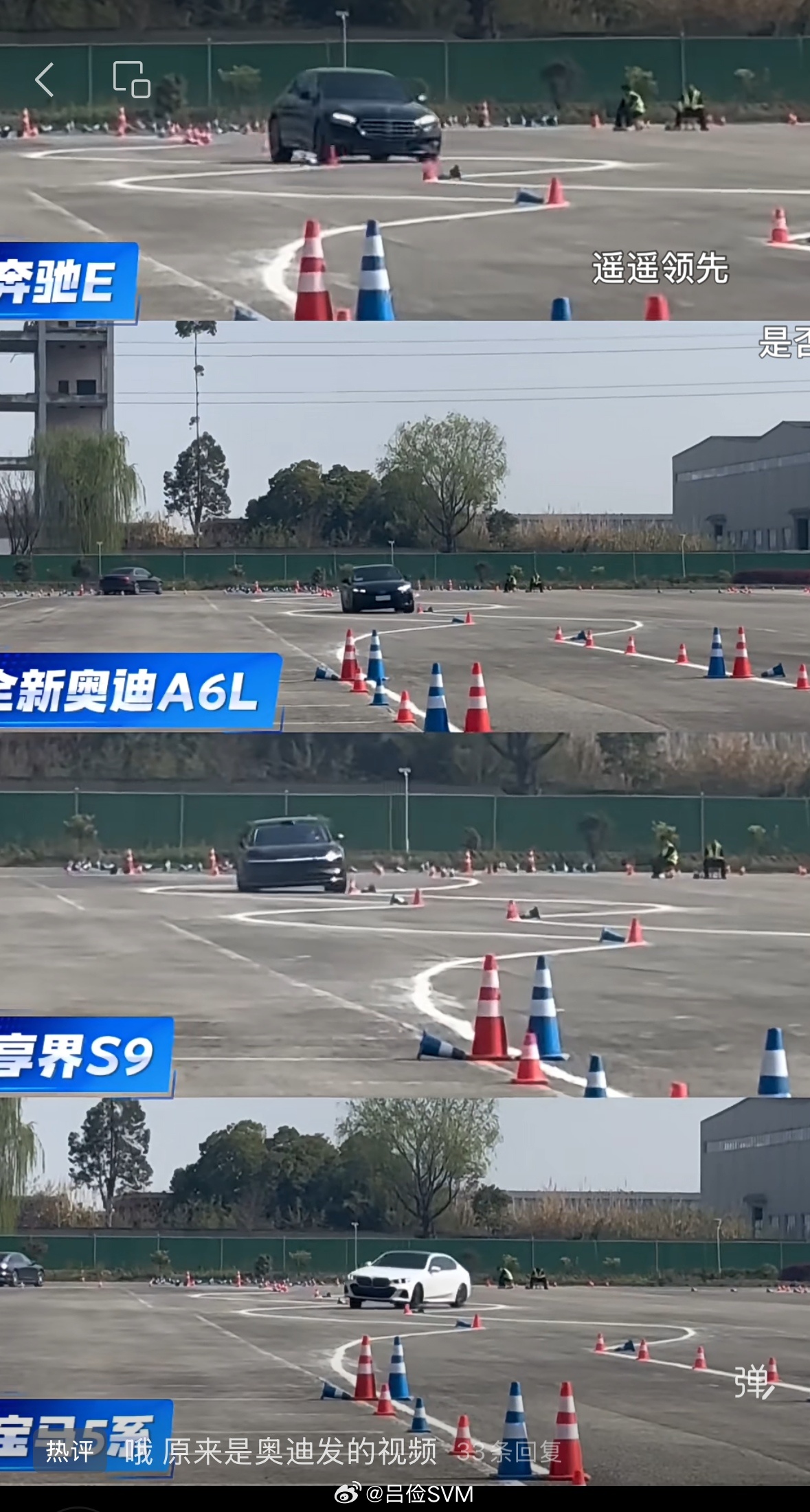宝马更奇怪,怎么第一个弯就像要起飞似的,整台车像是踩了香蕉皮一样失控了。因为缺少车内视角,所以这些都没办法给结论。