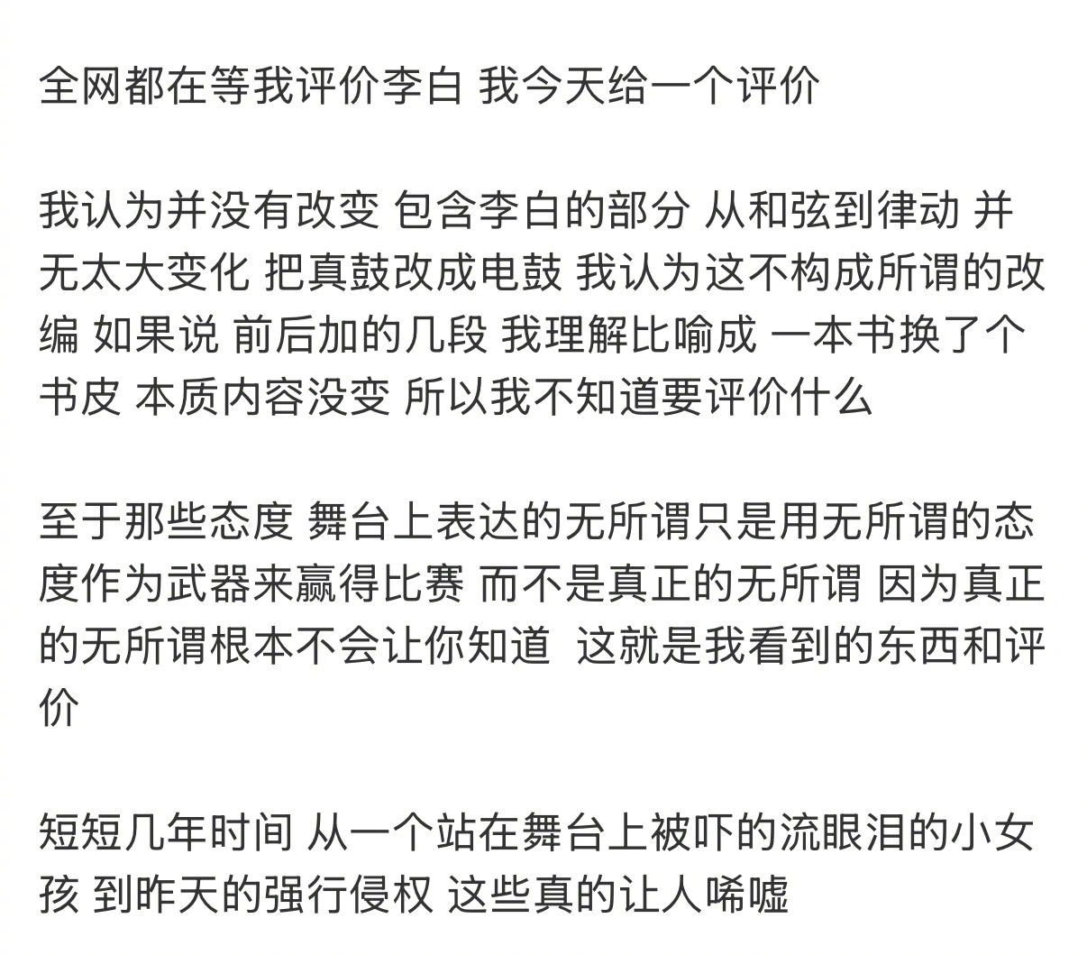 “短短几年时间 从一个站在舞台上被吓的流眼泪的小女孩 到昨天的强行侵权 这些真的让人唏嘘” 李荣浩 单依纯强行侵权