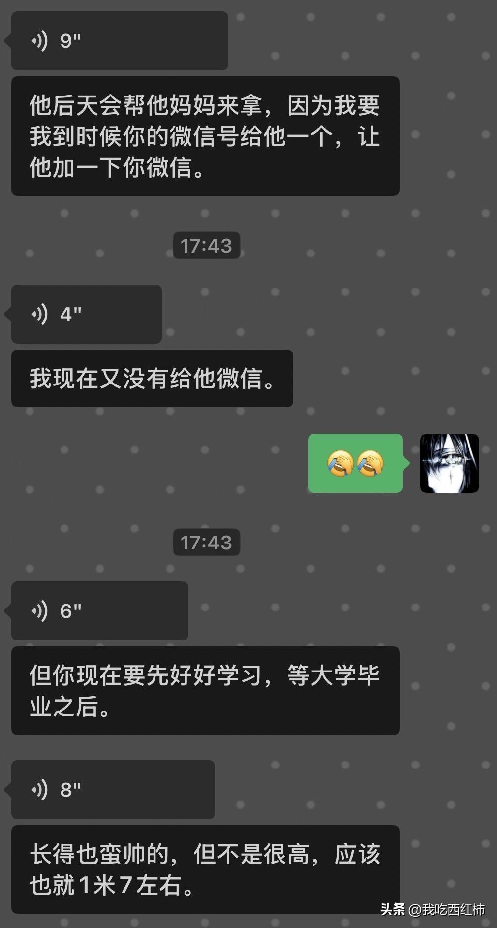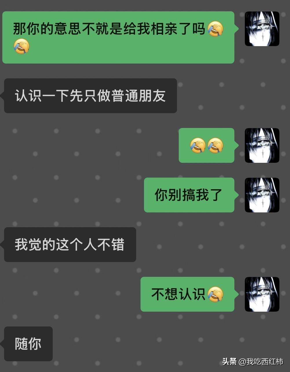 我才17岁 我妈已经开始给我相亲了 我妈是开衣服店的 今天她突然发来一张监控截图 说要把监控里的男生介绍给我认识 还大我四岁 可是我还是一个高中生 我都还没有成年 我都没想就拒绝了 后面她又发了一张我朋友圈自拍的截图 说好丑让我删掉 可是那张挺多人都夸我的 我也觉得不丑 她到底什么意思。我现在觉得好气好窒息…