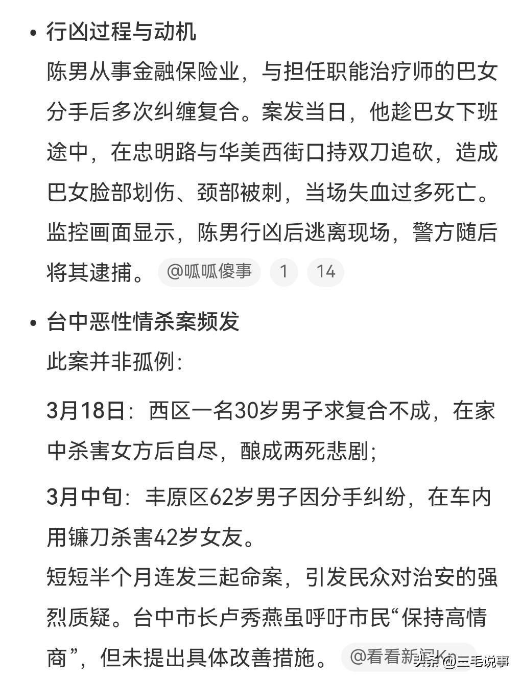 这真是防不胜防啊,有的感情太可怕了,得不到就毁灭。 有些男人在失恋后竟然会伤害前女友,甚至会杀害前女友,这就非常的可怕了。 近日,台中男子求复合遭拒砍死前女友。 这真的是太疯狂了,居然犯下如此重罪,太不计后果了。 死者才26岁,就这么殒命了。 男子多次在分手后纠缠求复合。 一旦女人想离开,九头牛都拉不回,有什么好纠缠的。 必是严惩这个男子。