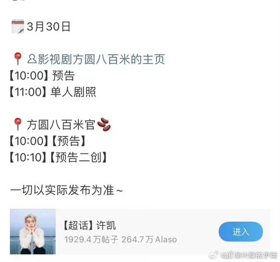 心动💗预警许凯方圆八百米明天10点开始预热了!!! 期待许凯方圆八百米 陈辉!