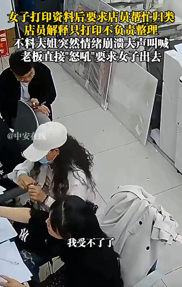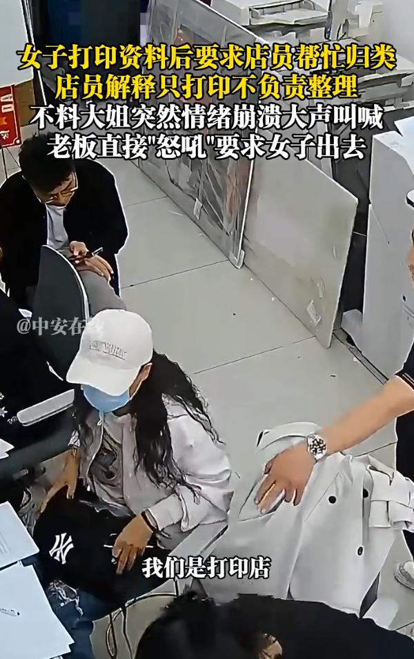 四川,一女子去打印店里打印资料,谁知打印完后女子要求店员进行整理,被拒绝后,女子在店里当场崩溃尖叫,老板闻讯赶来,直接训斥女子,要求她出去。而这一幕,引起了不小的争论 事情其实很简单。一位女士去打印店打资料,打完以后,要求店员帮她归类整理。店员说,事先已经讲清楚了,我们只负责打印,不负责给你归类 结果这位女士一下子情绪就上来了,在店里大声喊叫。本来店员和老板还耐心解释,但看她耍起脾气,老板也不让着,直接吼着让她出去,还说了一句:我们是打印店,不是给你归类的 就这么一件事,在网上分成了两派,吵得不可开交 支持店家的觉得,这女人是不是有点过分了?人家是打印店,又不是你的私人秘书。你打印一堆东西,让人家帮你一页一页分好类、归好档,这得花多少时间?人家后面还有别的客人等着呢。再说了,人家事先已经说清楚了不负责这个,你不能花钱了就觉得自己是上帝,想让人干啥就干啥 帮女士说话的也有自己的道理。有人说,我要是去打印店,本来就按分类把文件排好给店家的,结果你打出来给我混成一堆,那我来的时候是分好的,你给我弄乱了,你让我怎么弄?与其我自己花时间重新整理,还不如你再给我免费重打一份 我觉得这事儿里有个挺值得琢磨的点,就是现在很多人对花钱买服务这件事,理解得越来越偏了 你花钱买的是打印,不是买一个人对你百依百顺。你花钱买的是商品,不是买一个人给你当奴才。这个道理其实特别简单,但不知道为什么,有些人一进了消费场景,就容易把自己摆在一个特别高的位置上,觉得我掏钱了,你就得什么都听我的 可问题是,你掏的那点钱,撑不起你那些额外的要求啊 你去面馆点一碗面,让人家给你把面条一根一根摆整齐,人家不干,你是不是也要吵一架?你去超市买一瓶水,让人家给你拧开盖子,人家不干,你是不是也要发火? 打印店也是一样。它的服务范围就是打印、复印、扫描这些。归类整理,那是另一门生意,叫文件管理服务,你要是愿意出那个价,人家未必不能做。但你用打印的钱,让人家干文秘的活,人家不干,你就闹,这说不过去。
