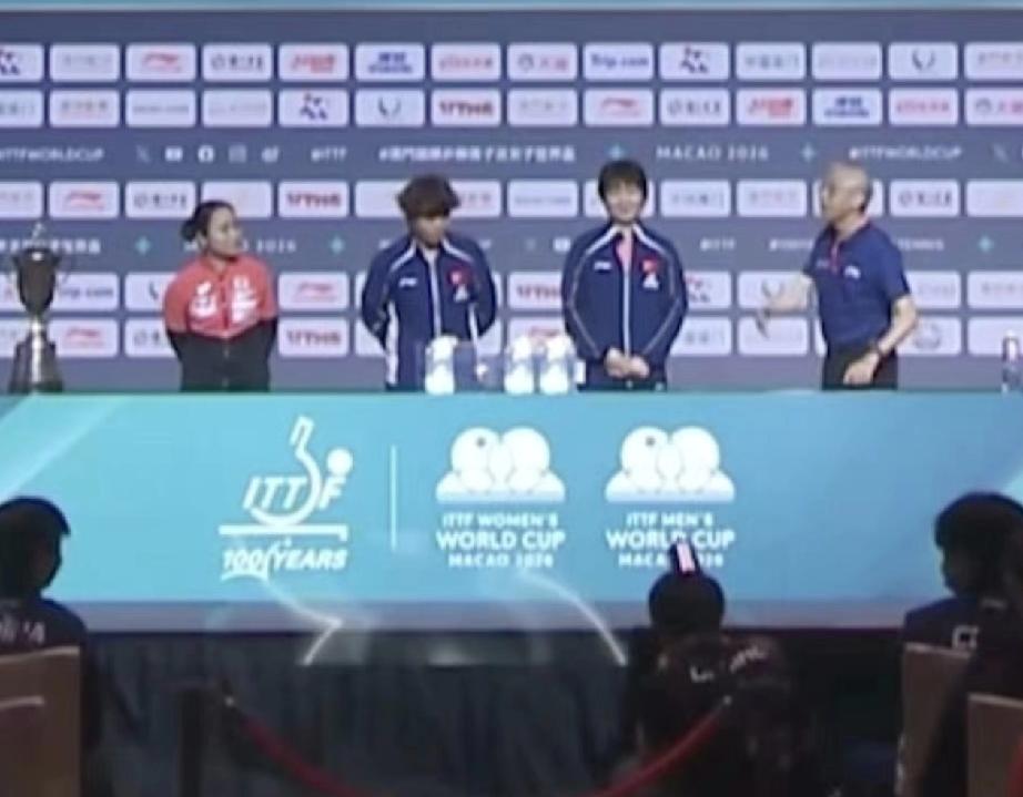 两个一模一样的[笑哭], 孙颖莎和王楚钦,都参加了2026澳门国际乒联单打世界杯第一阶段分组抽签仪式,两个人站在台子上,发型一模一样,队服一模一样,抽签动作也一模一样[笑哭]。 连在台下坐着,也是都在看手机,不知道是不是看的同一个内容。 抽签仪式已经结束,王楚钦和卢伟🇦🇺,还有约内斯库🇷🇴分在了一个小组,孙颖莎和梅谢芙🇪🇬、李昱谆分在了一个小组,小组第一名晋级第二阶段淘汰赛,目前看,莎莎和大头都无压力[赞][笑哭]。