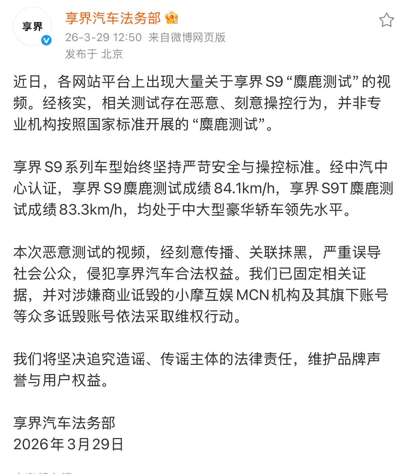 享界法务部里面提到的小摩互娱,到底背后是谁啊好难猜 享界汽车回应网传s9麋鹿测试视频