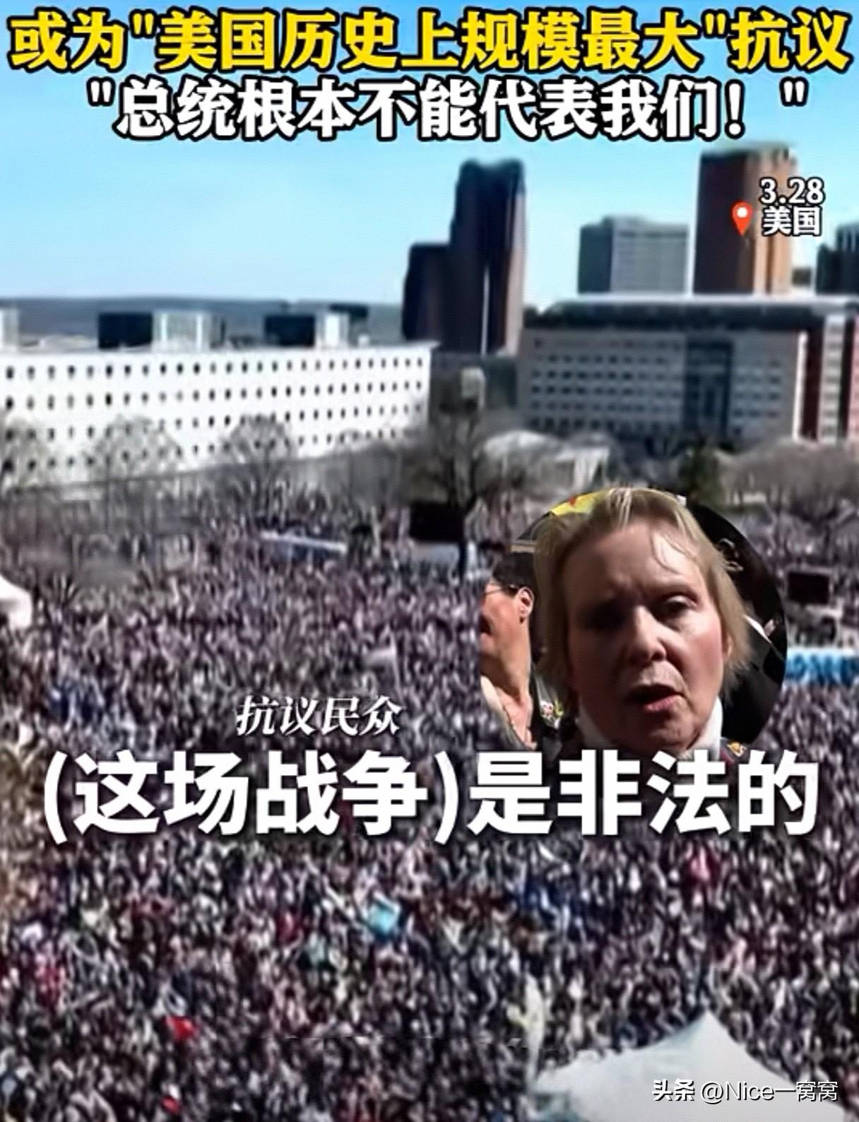 美国乱了!“不要国王”抗议活动再起! 当地时间3月28日,美国各州超900万人上街挥舞伊朗国旗!抗议特朗普!或为“美国历史上规模最大”抗议 ,抗议人士大声呼喊:“总统根本不能代表我们!” 如此看来,美国民间正义的声音更多,美国民众也知道,只有反对美国政府,导弹就不会射向美国! 对此,有网友从不同角度评论说:美伊战争持续一个月了,打不过了才想起抗议反战,如果美国现在打赢了,还会有这么多美国人民抗议吗? 这倒是给了我们不同角度的反思!为什么美国民众一开始不早一点觉醒?如果早一点站出来给白宫施加压力,如果是3月初能有这样的抗议力度,或许深陷中东泥潭的美国不至于如此狼狈吧?如果爱好和平的人都能像我们东大一样早早出面共同斡旋,中东战事也就不会死伤那么多无辜民众了…… 实际上,全世界底层人幸福的逻辑一直很简单,那就是需要和平,而不是战争! 一个国家,如果想要衰败很容易,只需要一场“酣畅淋漓”的败仗!所以…如果“美元”还想继续强势,唯一的出路就是停止战争,回头是岸! 各位怎么看?评论区聊聊吧。 参考来源:央视新闻 不要国王抗议活动再起 美国超900万人上街抗议特朗普声援伊朗