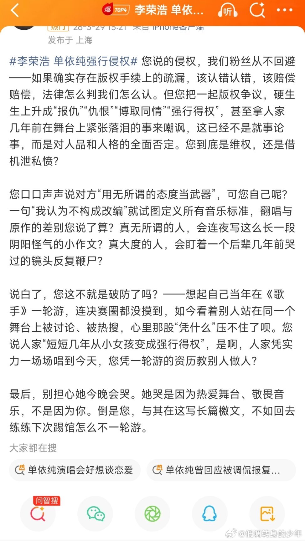 李荣浩 单依纯强行侵权那些个狗仔yxh放🍉的来看看什么叫对线,要么直接发,要么