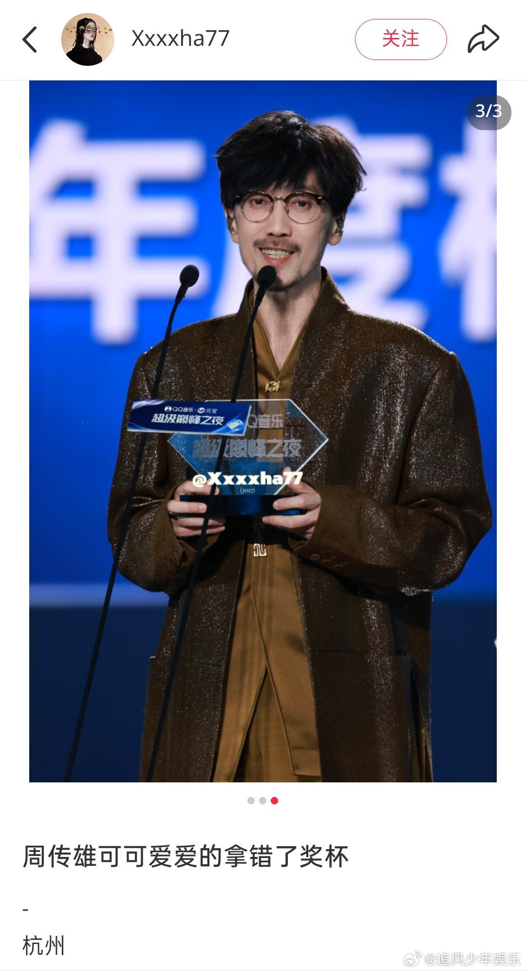 周传雄也拿错奖杯了 盛典名场面!周传雄王俊凯拿错奖杯,这默契真没谁了,难怪能合作出《无人乐园》这么好听的歌!