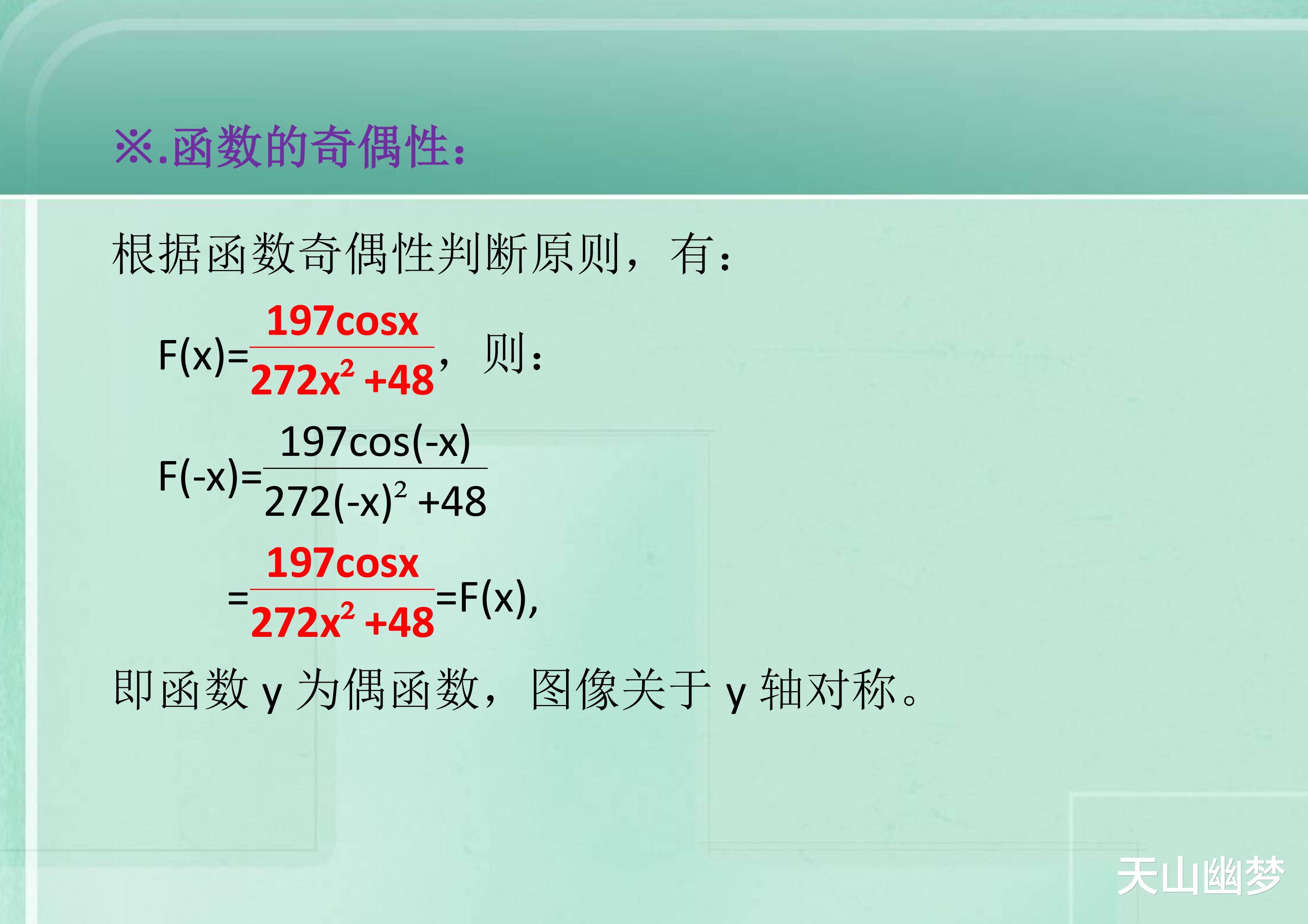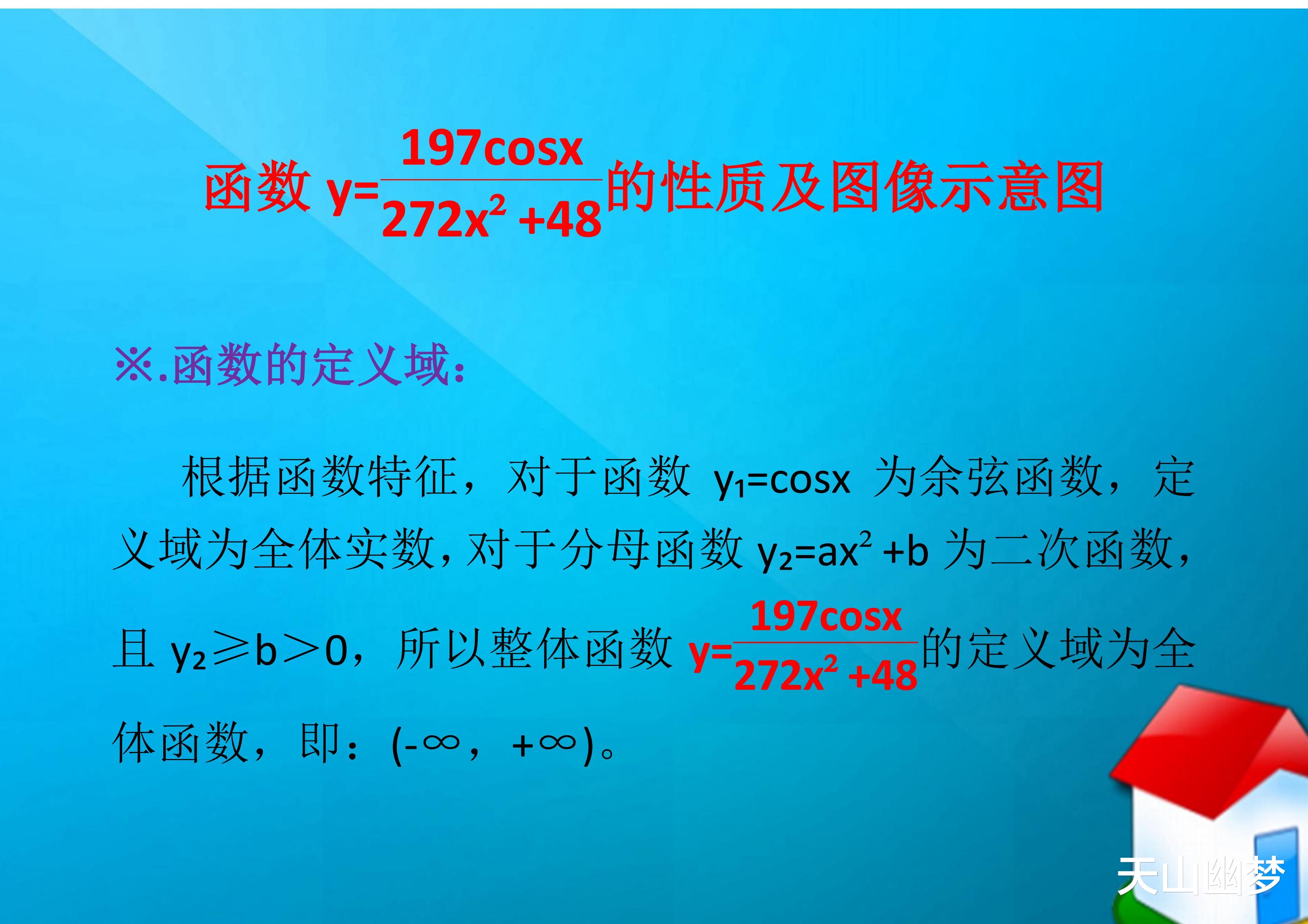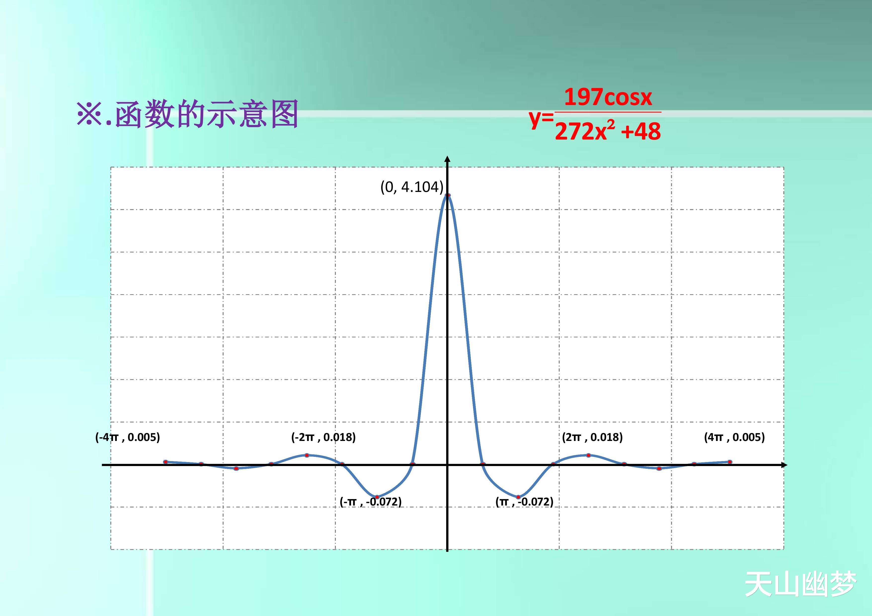 函数y=197cosx/(272x^2+48)的性质及图像