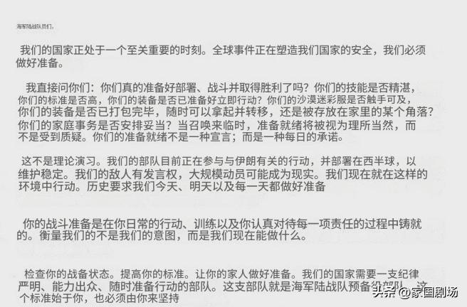地面行动已进入最后准备阶段,即将展开。 美国海军陆战队预备役人员已接到命令,测试其在伊朗的作战准备情况。 海军陆战队预备役司令部中将的一封信函指出,大规模动员即将开始,整个部队必须紧急做好战斗准备。 与此同时,美国中央司令部宣布,更多海军陆战队增援部队已抵达中东,并在伊朗沿海待命