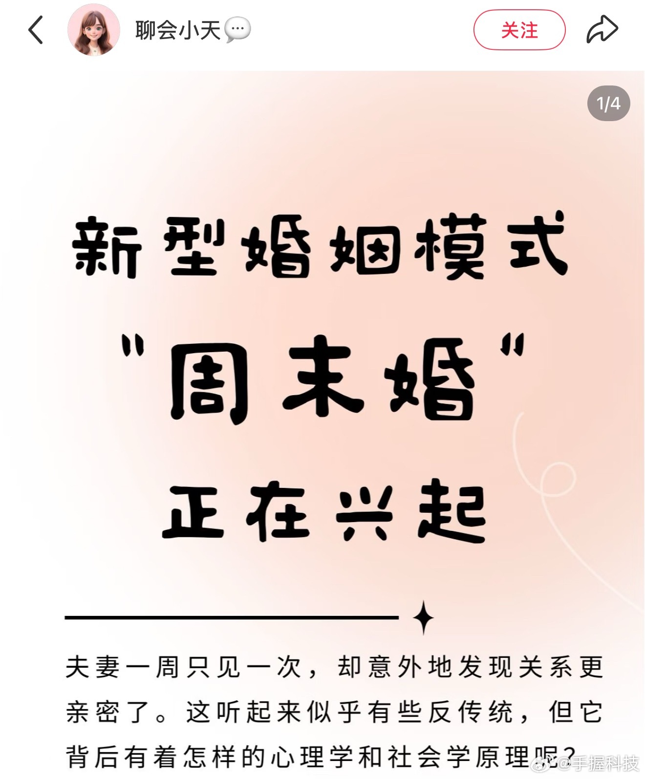 一二线城市兴起周末情侣没想到连“周末婚”的概念都有了,不知道以后周末还能产生什么关系。感觉这种状态有点畸形了,现实中的周末情侣其实不是文中的每周末才能见面的情侣,而是工作日认识的网友,周末时候去对方城市陪伴三天(周五晚—周日晚),周日晚后默认自动解除关系…