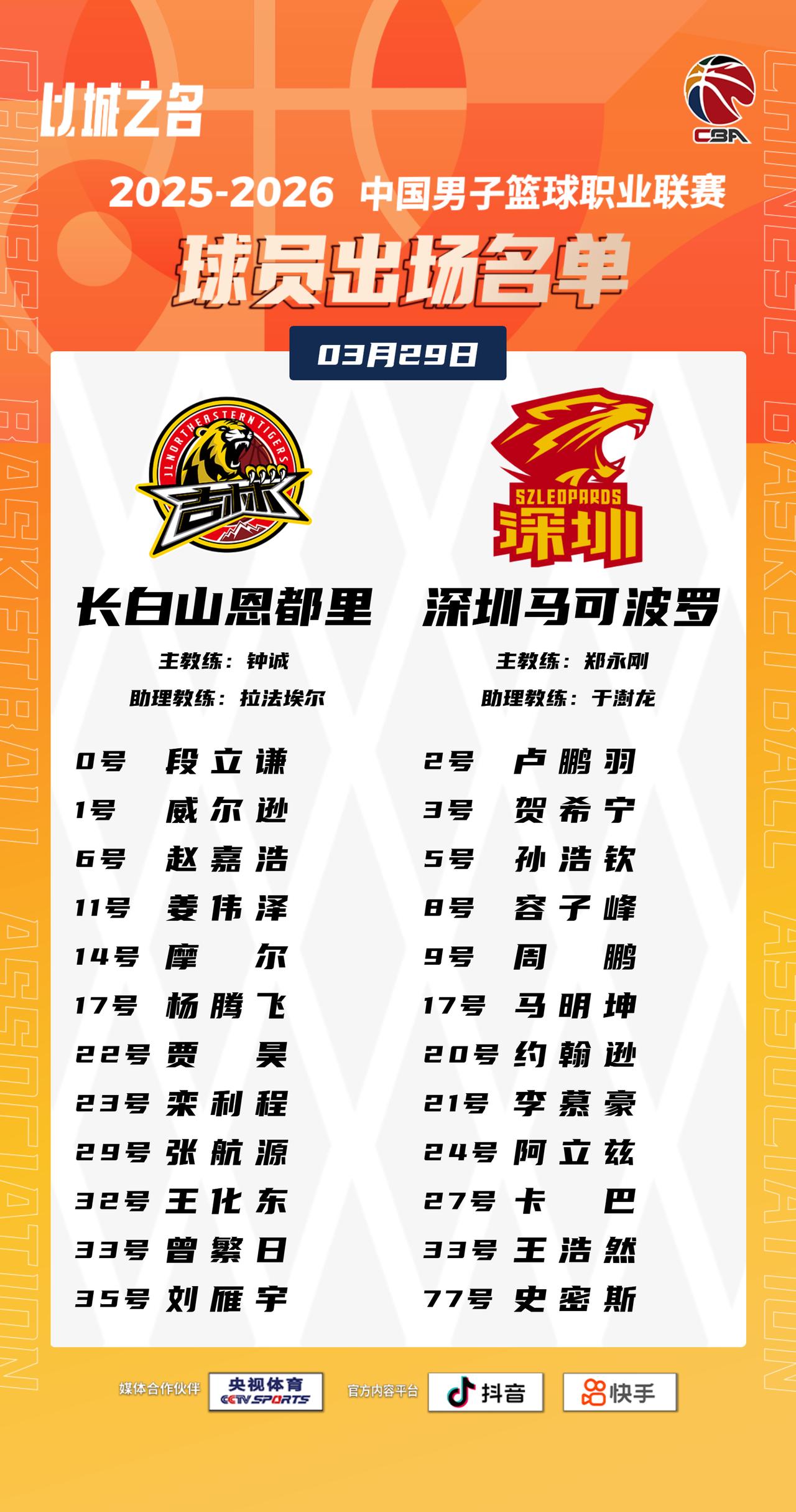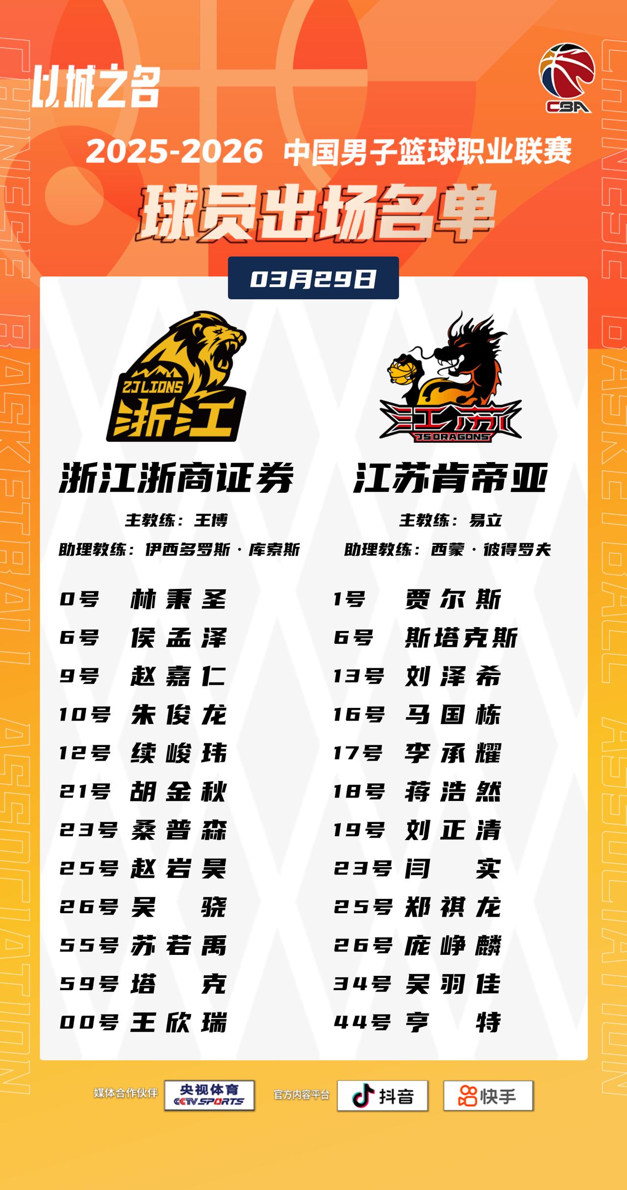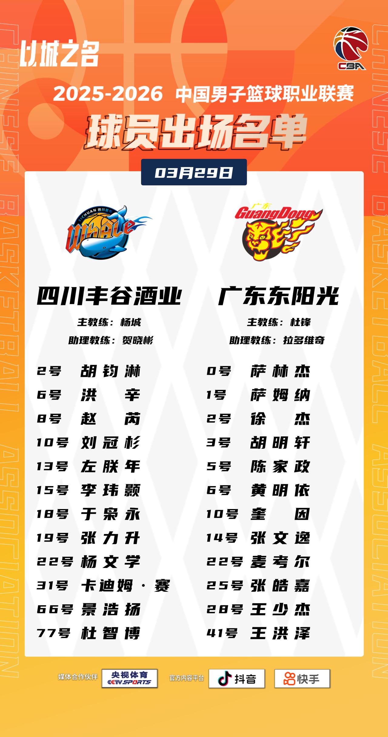 【大名单出炉】2025-2026赛季CBA联赛常规赛第三十二轮今晚开打,4场比赛将在19:35同时跳球。敬请期待!以城之名