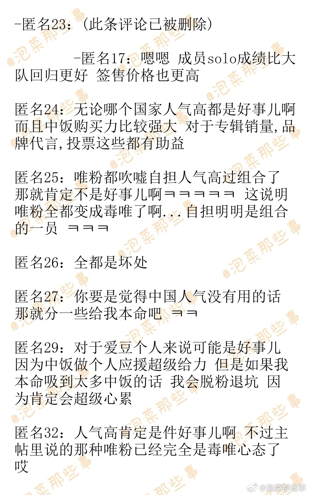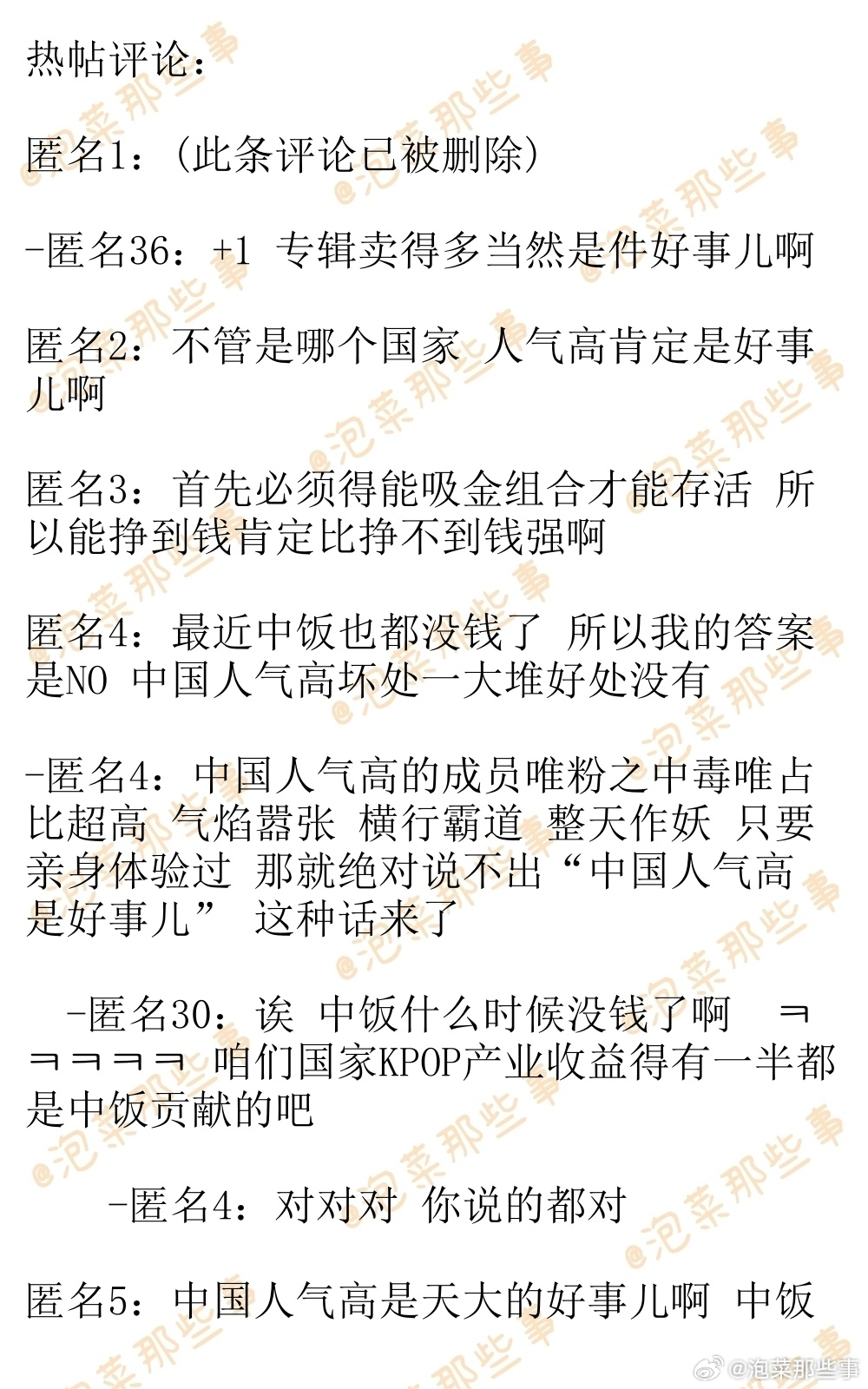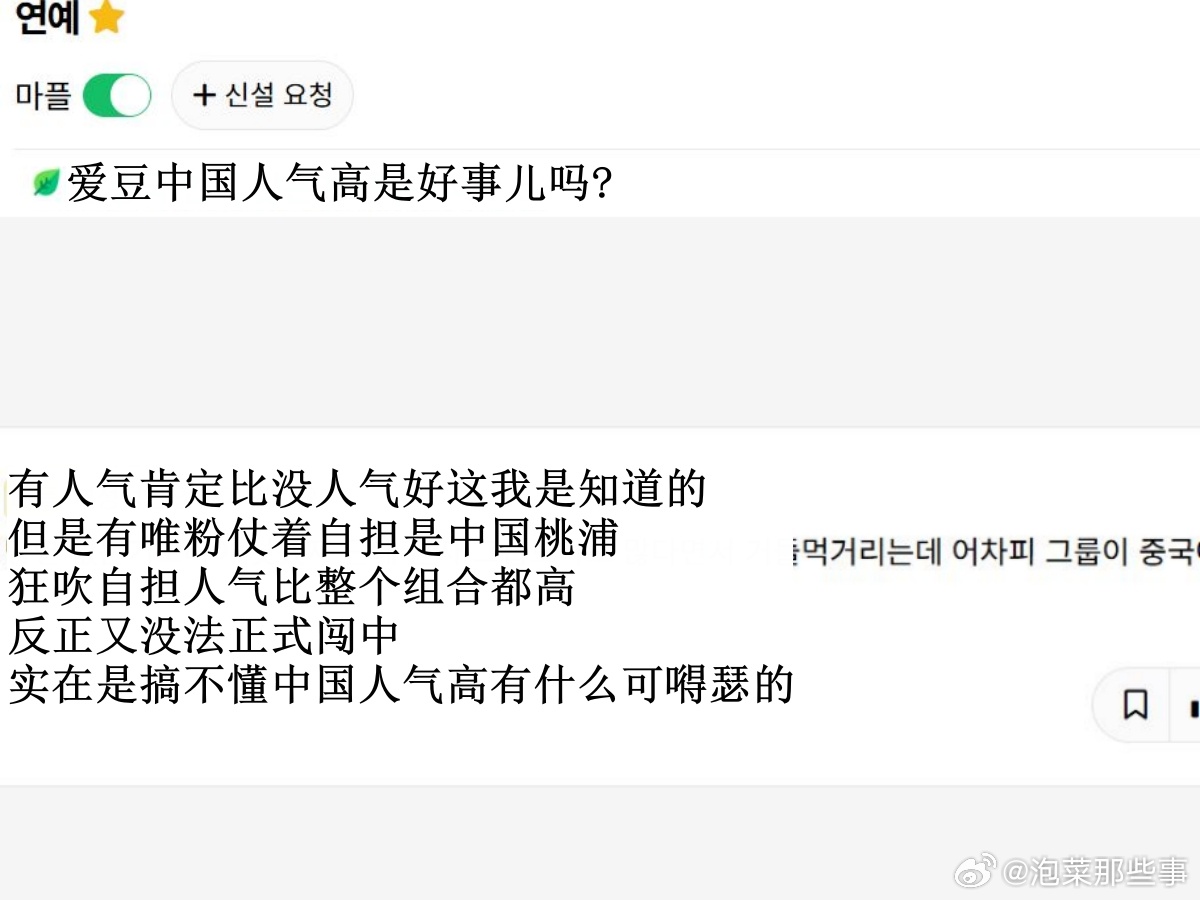 🔥韩网热帖评论翻译🔥爱豆组合成员中国人气高是好事儿吗?韩网原帖帖主发问:爱豆组合成员中国人气高是好事儿吗? 有人气肯定比没人气强这我是知道的 但是有唯粉仗着自担是中国桃浦狂吹自担人气比整个组合都高 反正又没法正式闯中 中国人气高有什么可嘚瑟的啊 我是真心理解不能哎cr.instiz