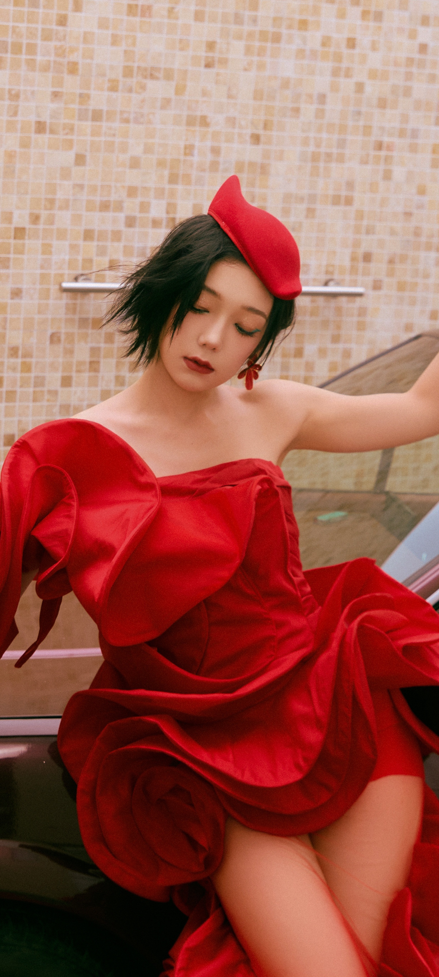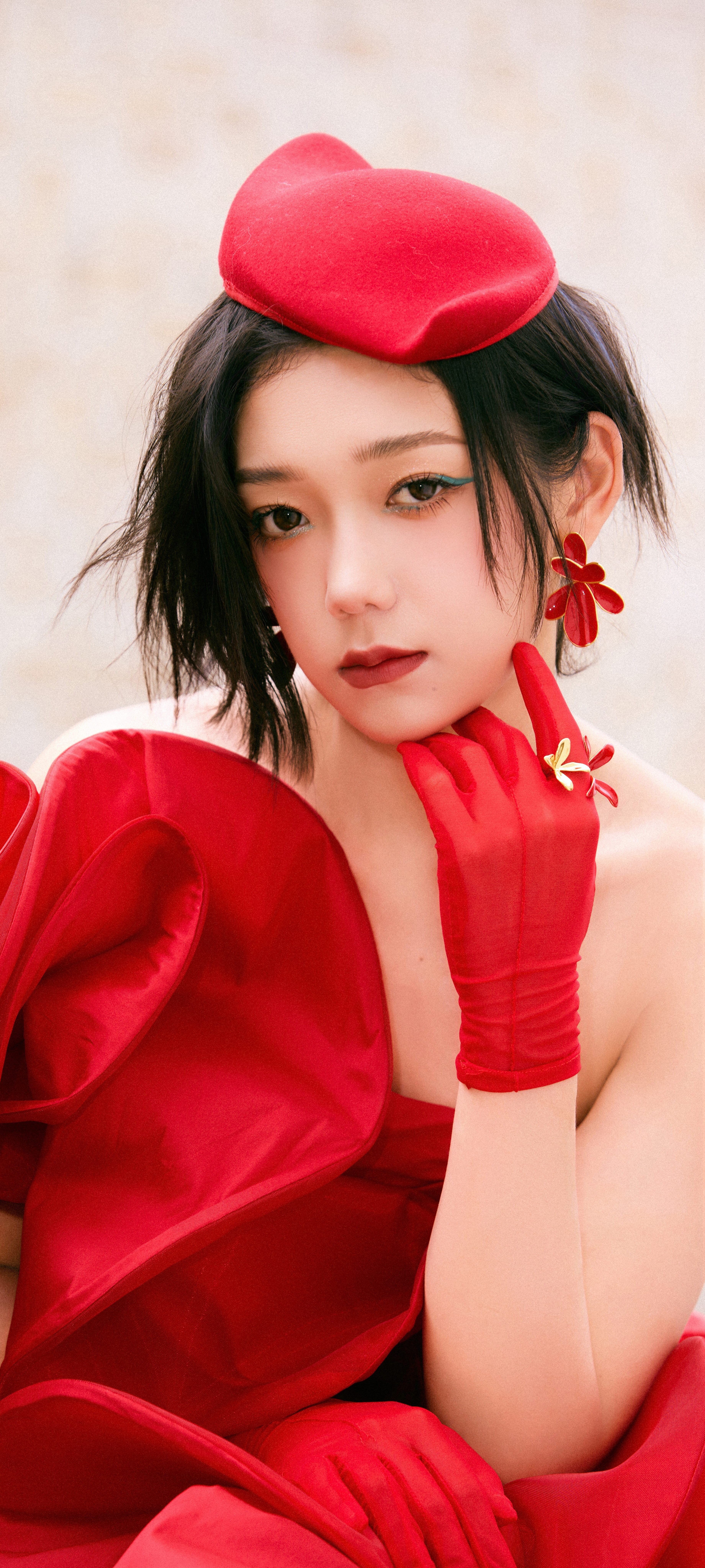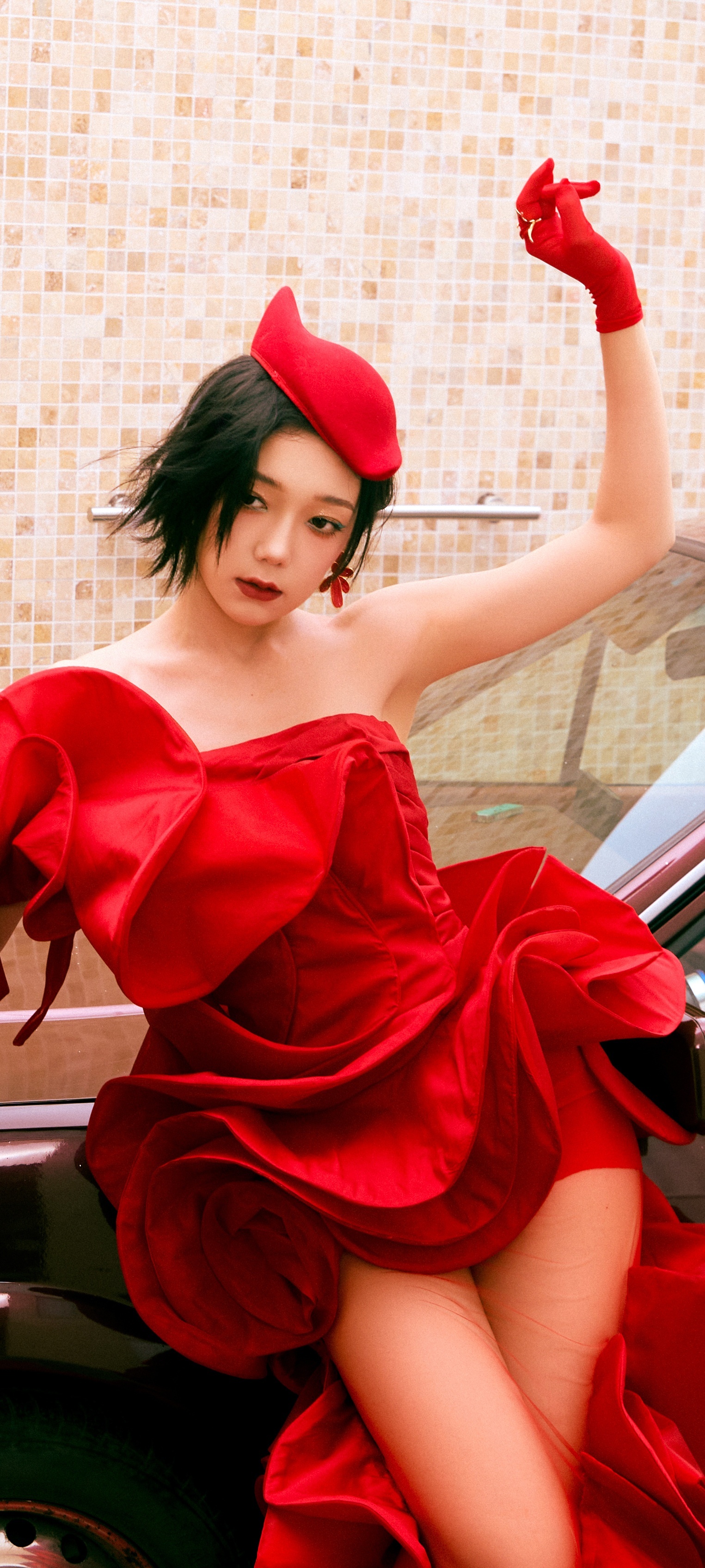 希林娜依高穿搭壁纸:夏日里的热烈红玫瑰。希林娜依高