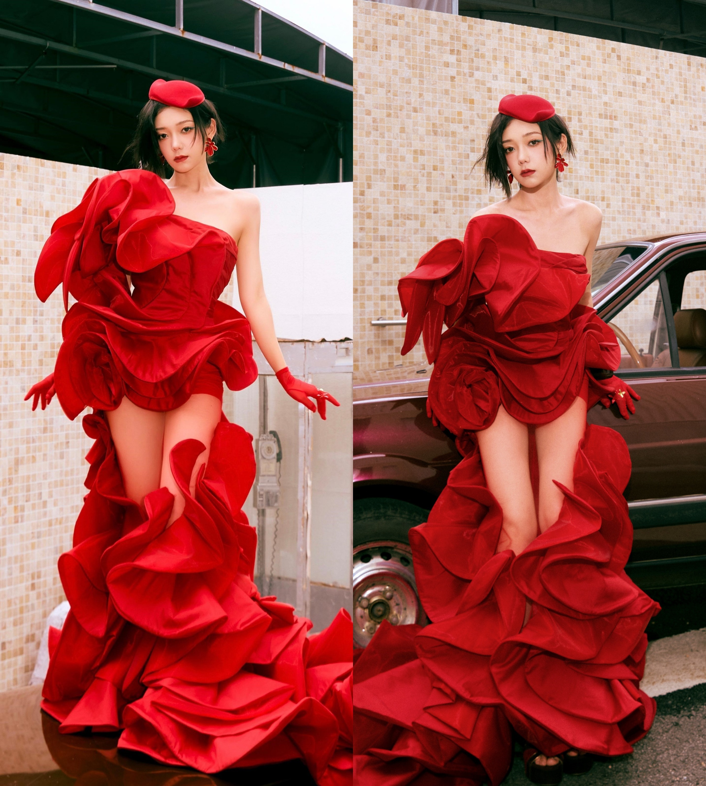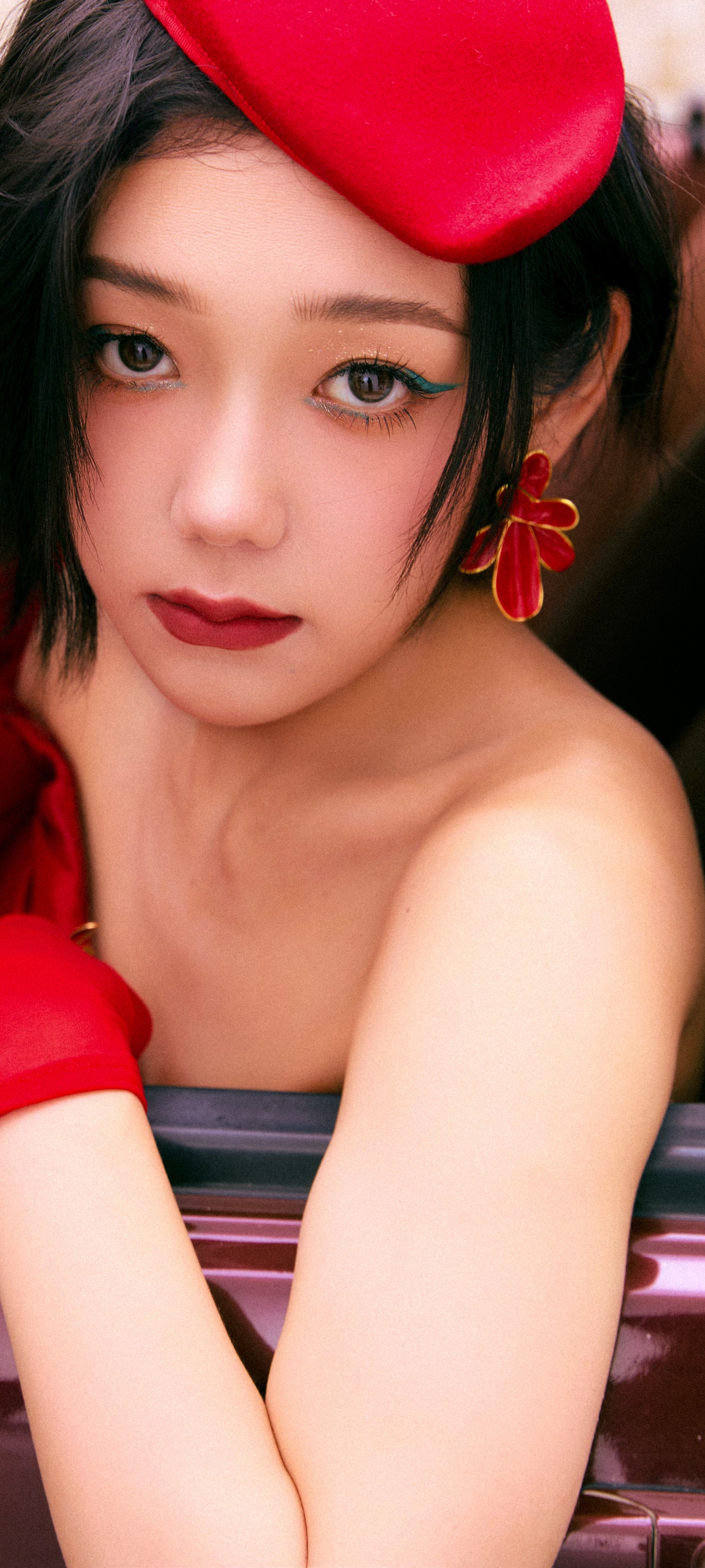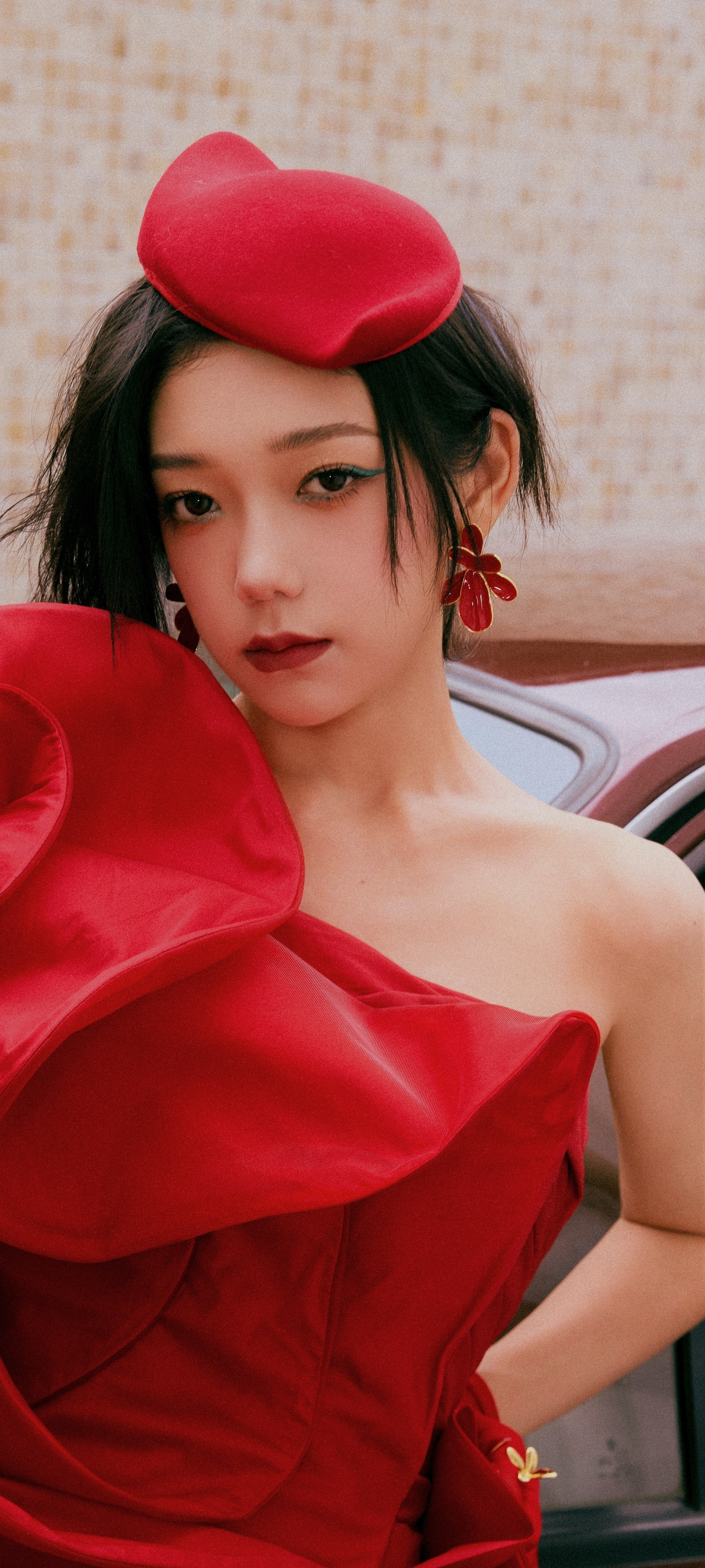 希林娜依高穿搭壁纸:夏日里的热烈红玫瑰。希林娜依高