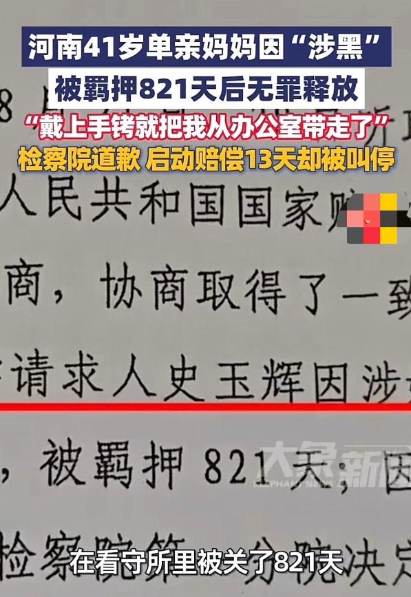 河南,41岁单亲妈妈在海南打工时,给老板跑了一趟腿,就被在办公室里带上手铐带走,理由是被认定为涉 黑,女子被带走后关了821天,后来因为证据不足不起诉为由,无罪释放,女子重获自由后申请赔偿,万万没想到,该程序刚启动13天,女子又被以骗取银行贷款为由被重新立案,赔偿程序被终止,女子不解,都被判无罪的事,为何就揪住她不放,自己何时才能熬出个头! 说起来也挺离谱的,史玉辉2018年底在海南一家物业公司找了份经理的工作,平时就做点行政杂活,帮公司递递材料、处理点办公琐事,都是再普通不过的工作。 2021年8月的一天,她正在办公室上班,突然闯进几个刑警,没等她反应过来,手铐就戴在了手上,直接被从儋州带到了几十公里外的昌江审讯室。 她当时都懵了,不知道自己犯了啥大错,直到拿到羁押通知书才知道,自己被认定为涉黑了。 后来大家才知道,她当时的老板是个涉黑案件的主犯,而警方认定她涉黑的证据,说出来能让人笑掉大牙——无非就是她按公司安排,去相关部门递了几次正规材料,陪老板应酬时帮着买了单,甚至和老板微信聊工作时语气客气了点,这些再正常不过的员工行为,竟然被当成了涉黑的“铁证”。 史玉辉一再辩解,说自己从来没参与过任何违法活动,更不知道什么黑社会组织,可没人听她的,就这么被关了起来。 这一关就是821天,差不多两年半啊,一个单亲妈妈,在看守所里度日如年,心里惦记着家里的孩子,不知道孩子过得好不好,有没有人照顾。 期间警方也多次提审她,劝她认罪认罚,说只要认罪,就只判一年半,不认罪就重判,可史玉辉硬是扛住了,她坚信自己没罪,法律总会还她一个清白。 好在功夫不负有心人,2025年5月23日,海南省人民检察院终于给出了结论,说认定史玉辉涉黑的证据不足,不符合起诉条件,给她下了《不起诉决定书》,正式宣告她无罪,这才把她放了出来。 走出看守所的那一刻,史玉辉心里又酸又喜,酸的是这两年多的委屈和煎熬,喜的是自己终于洗清了冤屈,终于能见到孩子了。 无罪释放后,史玉辉就申请了国家赔偿,毕竟平白无故被关了821天,耽误了工作,也受了不少罪,申请赔偿天经地义。 2025年8月,检察院也作出了《刑事赔偿决定书》,同意赔偿她的人身自由赔偿金和精神损害抚慰金,还承诺会删除相关涉案信息,给她道歉。 史玉辉这时候才觉得,这场噩梦终于要结束了,她想着拿到赔偿,好好弥补孩子,找份稳定的工作,安安稳稳过日子。 可谁能想到,命运又给她来了一记重击,赔偿程序刚启动13天,就被硬生生叫停了。原因是公安局又以“骗取银行贷款”为由,对她重新立案侦查,赔偿程序只能中止。 史玉辉彻底懵了,她怎么也想不通,自己都被无罪释放了,怎么又被立案了? 而且更离谱的是,这个所谓的“骗贷”案,在之前的涉黑案判决中,法院已经明确认定,相关行为只是违反了行政法规,根本不构成刑事犯罪,甚至当初起诉的时候,都没把她列为涉案人员。 为了弄清真相,史玉辉专程从河南洛阳赶到海南昌江,去检察院和公安局问询,可得到的答复却让人寒心。 检察官说,重新立案是正常流程,哪怕是几十年前的旧案,只要有新线索就能重新查,还直言不排除以后再以其他理由立案,赔偿可能永远落实不了。 而公安局那边,要么没人接待,要么就以办案保密为由,不透露任何细节,把她像踢皮球一样来回推。 大家想想,史玉辉一个单亲妈妈,本来就不容易,为了养家糊口背井离乡,结果平白无故被关了821天,好不容易洗清冤屈,申请赔偿的希望又被浇灭,换谁能承受得住? 她现在连无犯罪记录证明都开不了,找工作处处碰壁,只能靠亲友接济过日子,心里的委屈和无助,可想而知。 不过好在,这件事被曝光后,引起了当地政府的重视,3月29日,海南昌江黎族自治县成立了联合调查组,专门调查这件事,说会依法依规处置,调查结果也会适时公布。 说实话,咱们普通人看这件事,就觉得太不合理了,已经被法院认定无罪的事,凭什么又拿出来反复立案?这不是明摆着揪着一个弱女子不放吗? 史玉辉只是一个普通的单亲妈妈,没有背景,没有势力,只想安安稳稳挣点钱,却遭遇了这样的无妄之灾。821天的羁押,已经让她身心俱疲,13天的希望破灭,更是让她陷入了绝境。 希望联合调查组能尽快查明真相,还史玉辉一个公道,让她能顺利拿到赔偿,早日摆脱这场噩梦,好好和孩子过日子。 毕竟,法律的意义是保护无辜的人,而不是让好人受委屈,更不能让冤假错案寒了老百姓的心。