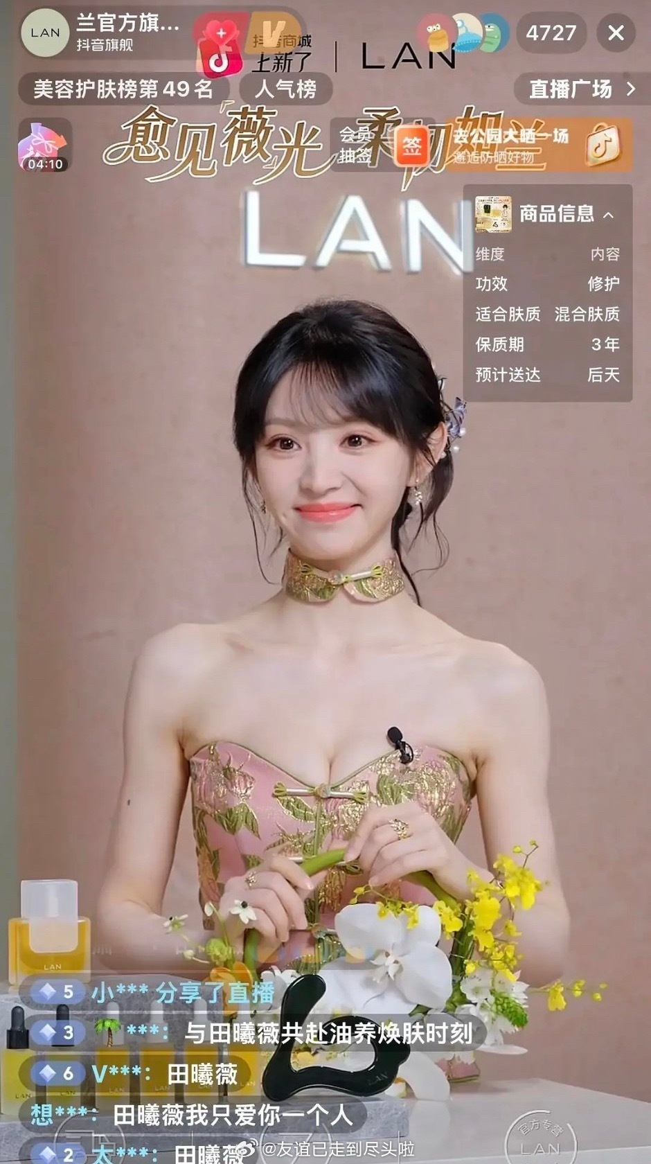 网友质疑田曦薇团队直播为什么要选明显小一码的裙子?都勒成这样了这个衣服,走红毯合