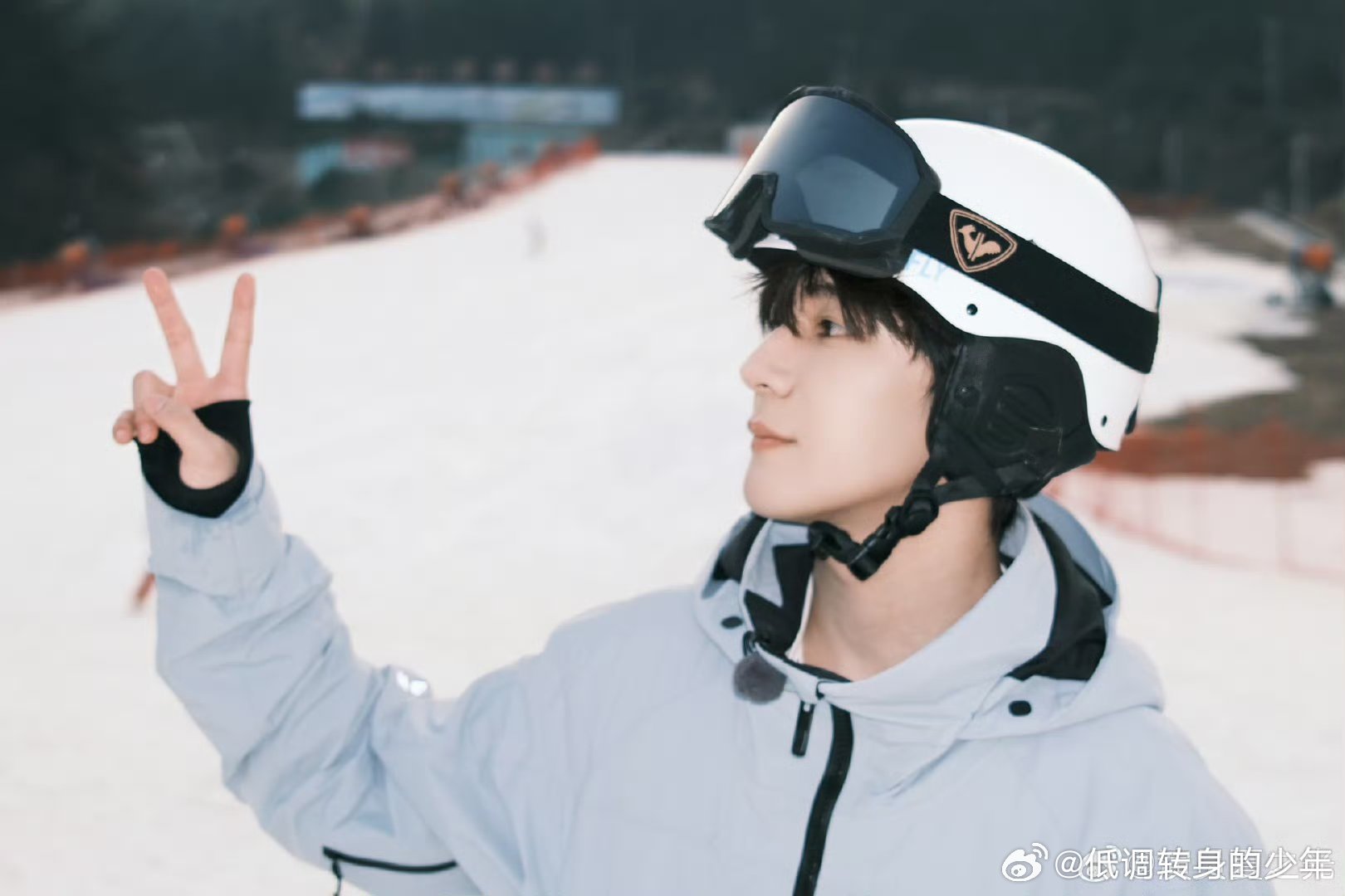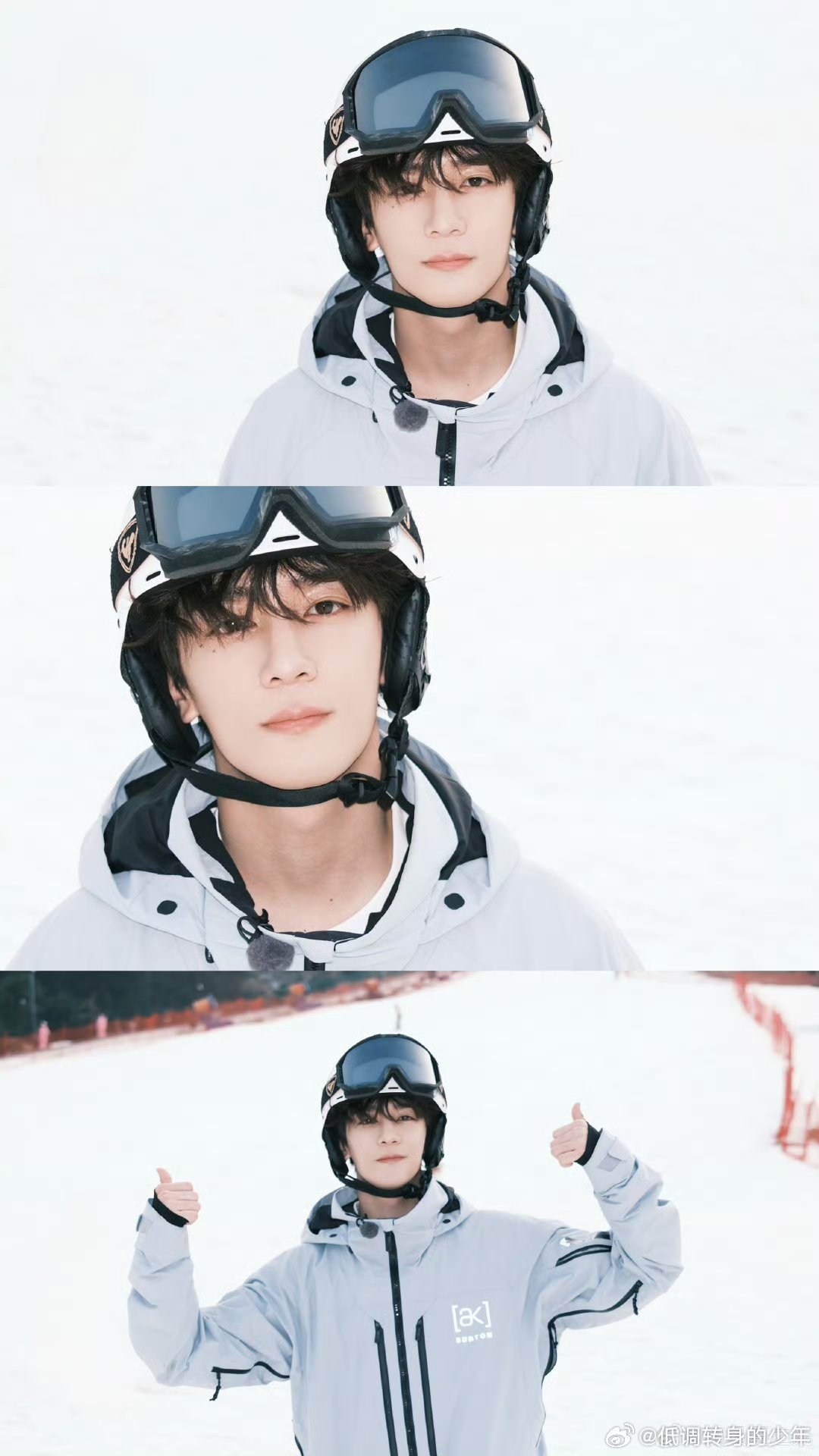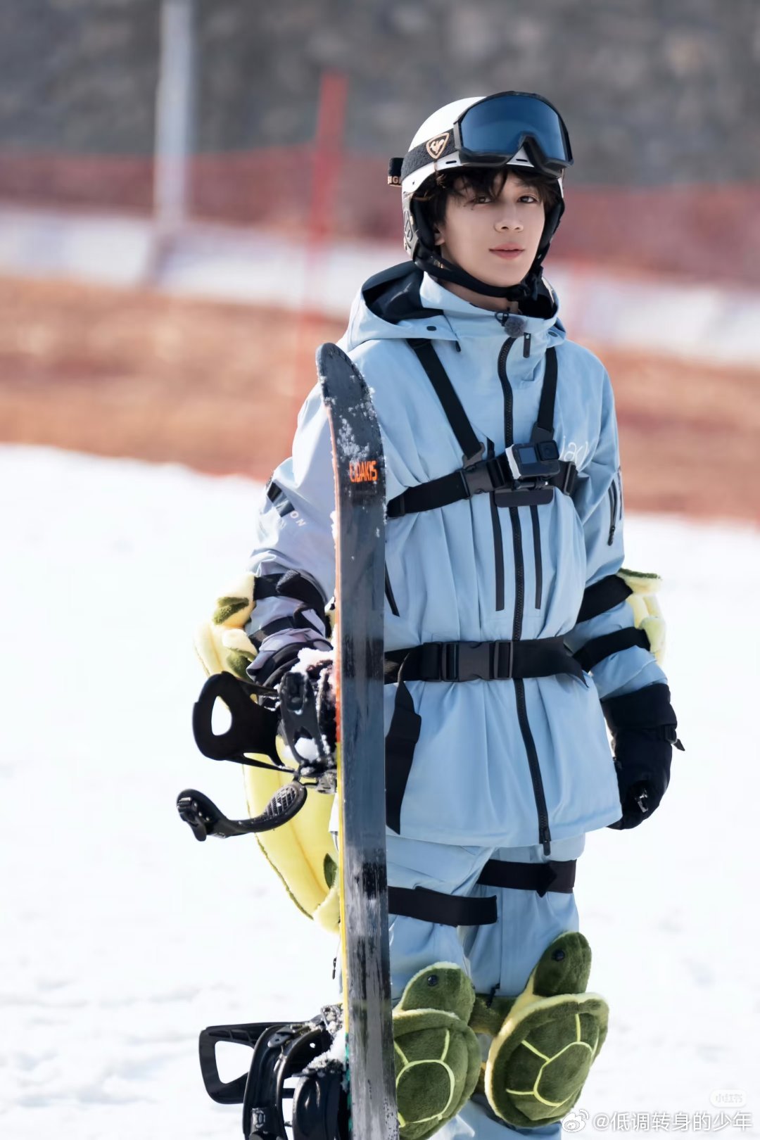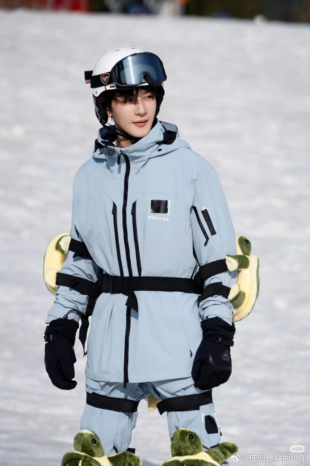 夏之光光光冰蓝色滑雪服好帅气,小乌龟护具少年感真的好戳人清新可爱夏之光