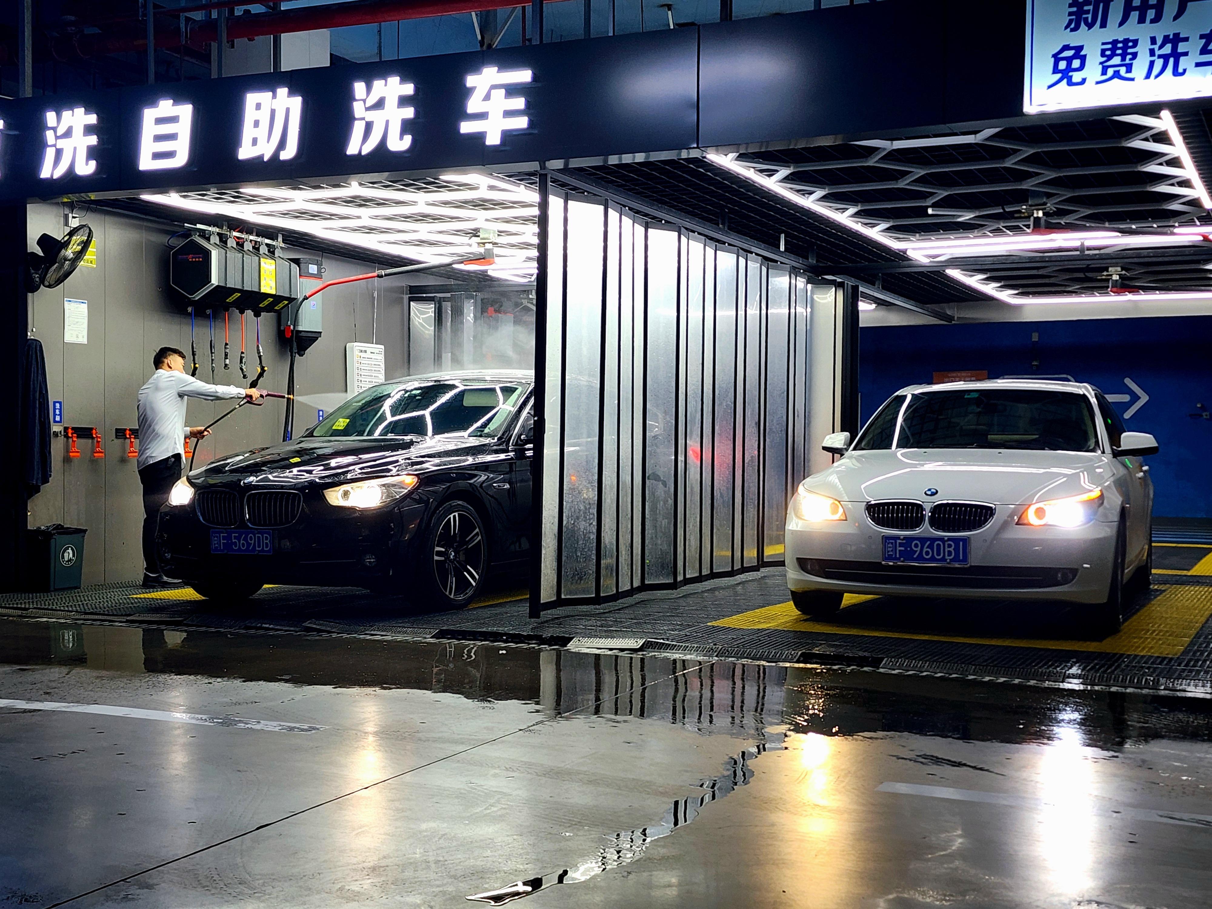 地库的灰有点大,开出来洗白白,每周和这17岁小伙儿交流一会儿,心情就非常愉悦,路上听听没标的哈曼卡顿,跺一跺脚让这退役运动员连降两个档冲出车流,虽然稍显迟疑,但L6悦耳的低吼气势不减当年腿脚依然健步如飞洗白白小兜一圈,又停回车位,安静,有神,巴适自助洗车遇到一台5GT,看来老bimmer都爱自己动手洗车喔宝马e60自游自在 龙岩·上杭万达广场