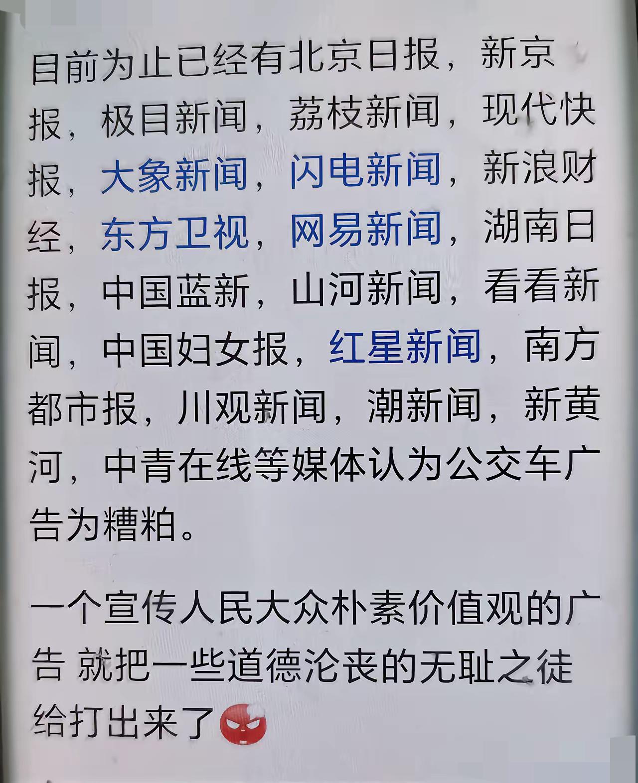 真搞不懂有些所谓主流媒体,张口闭口就把大众认可的底线操守打成封建糟粕,完全跟普通人的认知对着干。 守护自身清白、尊重婚恋底线,本就是刻在中国人骨子里的家教,怎么到他们嘴里就成了过时的东西?他们写文批判时,难道没想过自家孩子看到会被带偏吗?公共平台传递扭曲价值观,到底想把年轻人引向哪条路? 乐山公交敢打出贴合民心的标语,却没底气坚持到底,实在让人遗憾。大众心里都有杆秤,真正的良善价值观从不是少数媒体说了算,而是扎根在普通人的良知里。 到底是谁在脱离大众、颠倒黑白,大家心里都清楚,你觉得这种价值观该不该被守护?