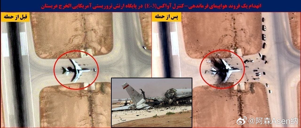 这意味着美国的损失率约为第一次海湾战争的4倍。伊朗公布击毁美军E3预警机卫星图