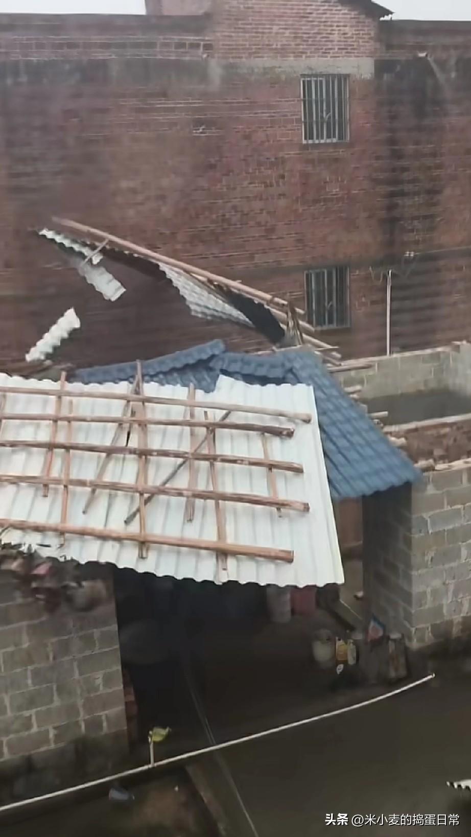 狂风掀翻屋顶,农村的房子在极端天气面前太脆弱了 刚刷到这段视频,看得我心惊肉跳——一阵狂风刮过,农村自建房的铁皮屋顶直接被掀起来,木架子和铁皮板在空中乱晃,最后“哐当”一声砸在地上,连旁边的砖墙都被砸得开裂。 屋外是灰蒙蒙的暴雨天,雾气裹着狂风,连远处的稻田都被吹得东倒西歪。住在这种房子里的人家,估计此刻正盯着漏风的屋顶发愁,刚搭好的棚子说没就没,修补的钱和精力,想想都让人头大。 这几年极端天气越来越频繁,农村的老房子、简易棚根本扛不住。不像城里有物业和高楼挡风,农民的家就是全部家当,一场风就能把日子搅得天翻地覆。 看着满地狼藉,真的心疼。希望相关部门能多关注农村房屋的抗风抗雨能力,也提醒大家,大风天一定要提前加固屋顶,别等出事了才后悔。 你家遇到过这么猛的大风吗?有没有被掀过屋顶的经历?
